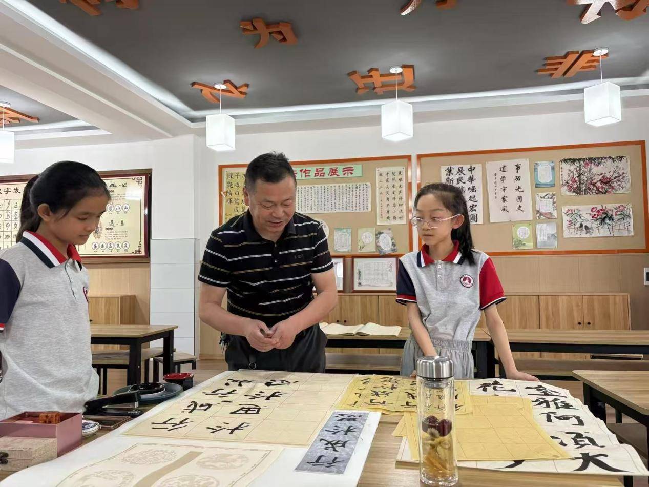 黃梅縣第一小學,書法老師正在指導學生練字。黃梅縣委宣傳部供圖