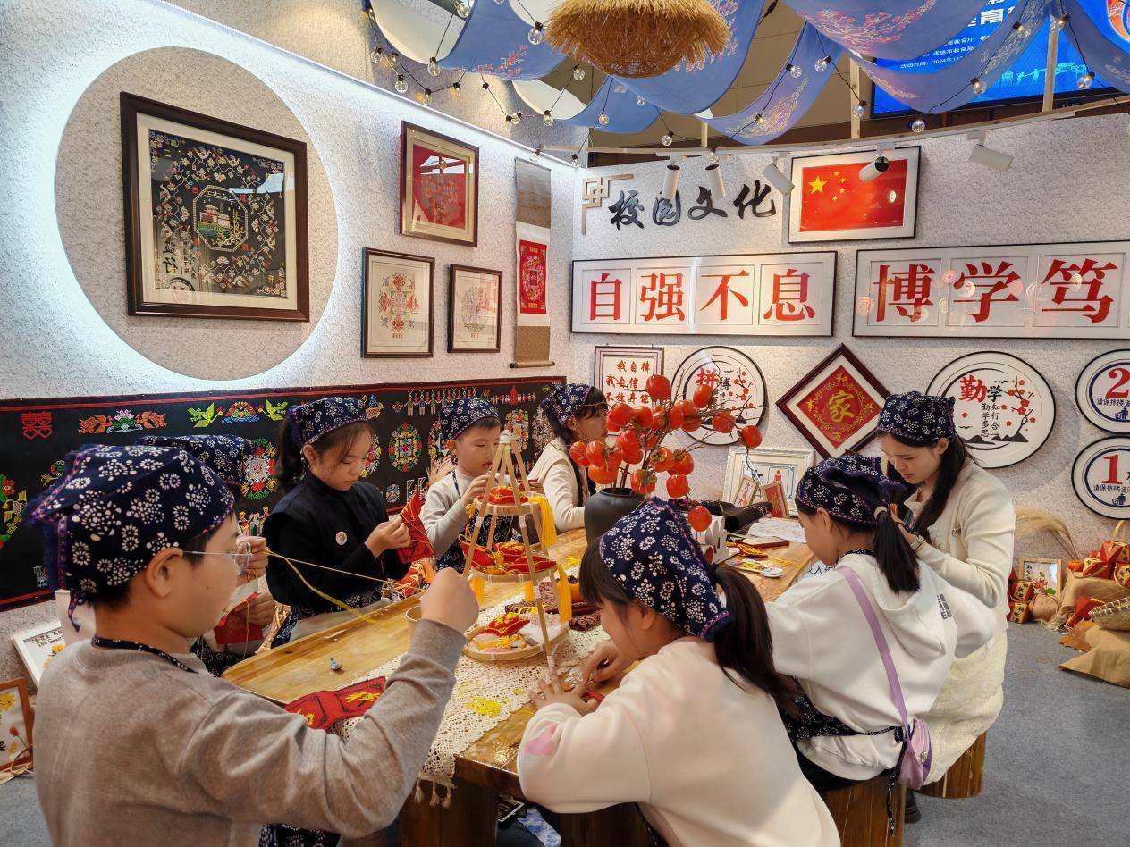 在黃梅縣第三小學蔡山校區,“梅鄉繡苑”挑花工作坊里,孩子們正專注地繡著花樣。校長王敏介紹:“孩子們在挑花中學會了靜心做事,這就是美育的力量。”