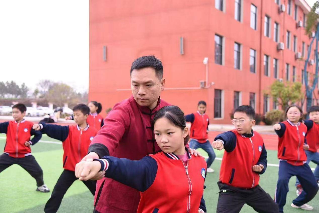 在黃梅縣第四小學岳飛校區,岳家拳傳承人雷超帶領孩子們操練拳法。操場上喝聲震天,800年非遺在少年們的一招一式中煥發新生。“練拳后,孩子們更自信了。”家長陳御江說。
