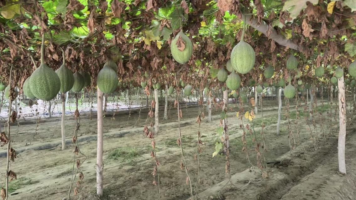 一排排瓜蔞架整齊排列。人民網記者 焦磊攝