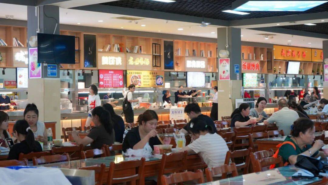臨近中午,不少新生家庭選擇在學校食堂就餐。食堂豐富多樣的菜品,如煲仔飯、麻辣香鍋、老母雞湯、小碗菜以及地道的湖北熱干面等,加上干凈明亮的環境和實惠親民的價格,讓不少學生、家長頻頻點頭。