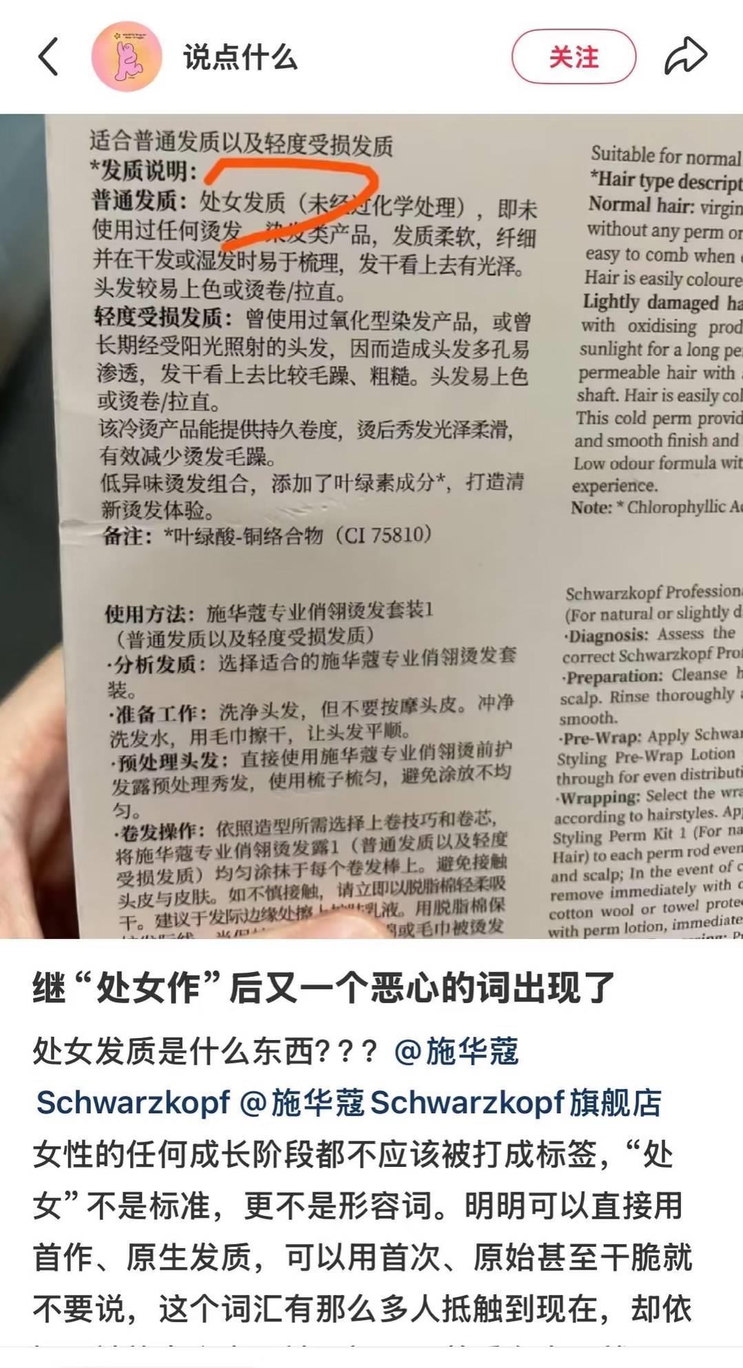 就算這一“專業術語”在業內再怎么普及,對于普通消費者而言,都是既陌生又容易引發歧義的。“處女”一詞帶有濃厚的道德評判色彩,將其用于發質描述,是強化不必要的性別標簽的做法。正如消費者所言,“原生發質”“未燙染發質”之類的翻譯明明就更加客觀好懂,非要翻譯成“處女”顯得不合時宜、情商很低,既缺乏對社會思潮的洞察,也沒有充分尊重女性消費者的感受。