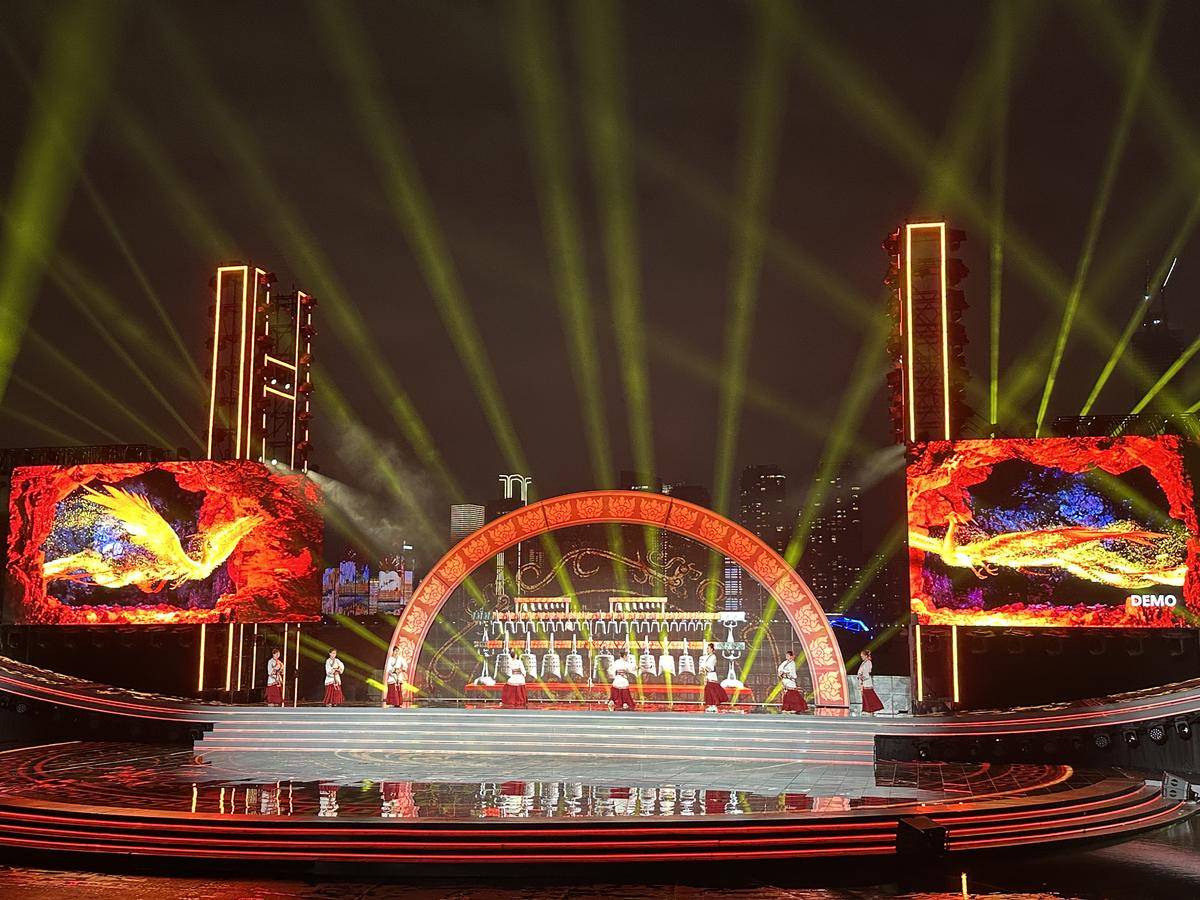 湖北日報全媒記者在聯排現場看到,電子編鐘與真人舞蹈交織,虛實相生;古琴、鷹笛、竹笛等傳統樂器與西洋樂器合奏,象征文明交融。節目《長江四季》以古琴、編鐘、竹笛、簫等民族樂器與現代科技融合演繹,從青藏高原到蜿蜒入海,展現了長江流域的自然風貌與文化多樣性。