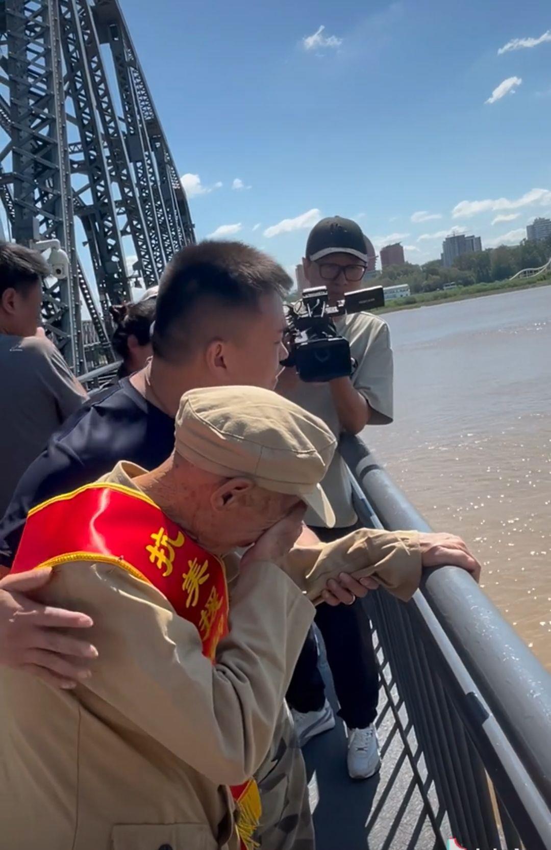 楊天銀老兵在鴨綠江斷橋上熱淚盈眶地呼喊戰(zhàn)友(圖片來源于網(wǎng)絡(luò))