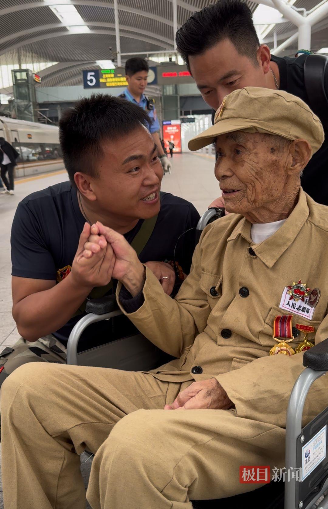 第十二批在韓中國人民志愿軍烈士遺骸安葬儀式9月13日將在沈陽舉行。9月11日上午,來自江蘇徐州市銅山區(qū)的抗美援朝老兵楊天銀踏上了從徐州東站開往沈陽的高鐵,他受邀參加此次志愿軍烈士遺骸回國安葬儀式。楊爺爺身患重病,最近剛出院,身體狀態(tài)不是特別好,但他表示自己從抗美援朝的戰(zhàn)場回國已經(jīng)70多年了,非常想念犧牲的戰(zhàn)友,經(jīng)常會夢到他們,就是爬也要爬到沈陽。