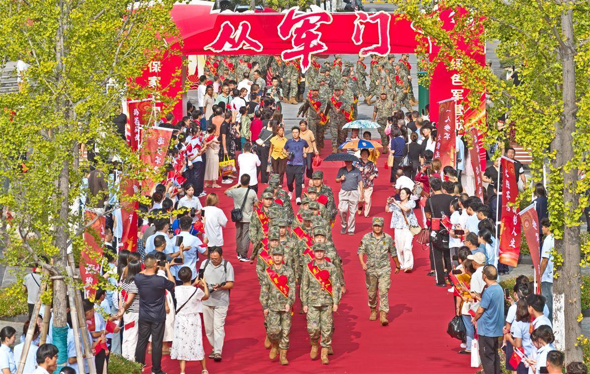 9月11日,“弘揚抗戰精神?共筑國防長城”宜昌市2025年下半年新兵歡送儀式暨全民國防教育月主題宣傳活動隆重舉行。200余名新兵帶著家鄉人民的期望,即將踏上保家衛國新征程。(湖北日報全媒記者 劉曙松 攝)