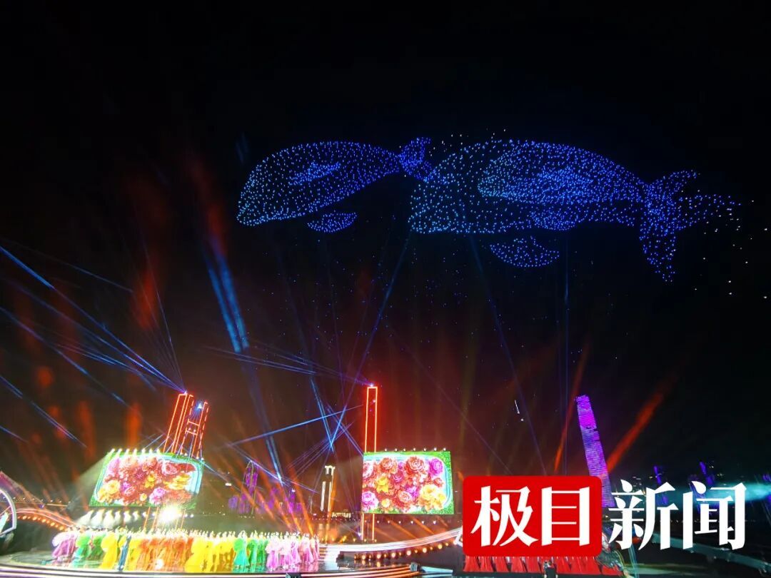 在長江大橋與長江二橋之間的江面上,4000架無人機在長江上空集結,在夜空中呈現壯觀的立體效果。其中,還有1000架無人機掛載新型冷煙花,呈現出“無人機+煙花”的精彩畫面。