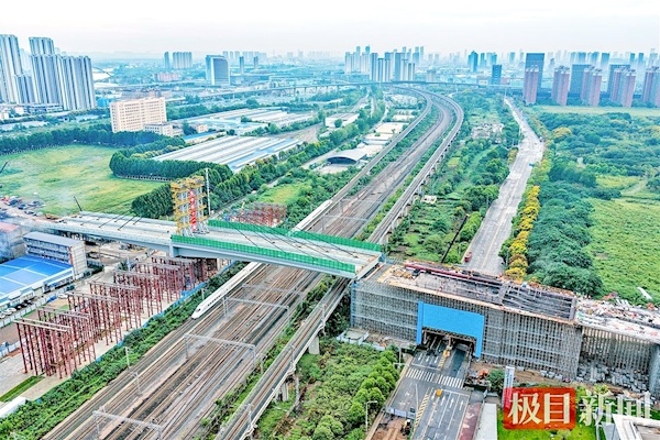據介紹,此次轉體橋施工區域環境極為復雜。橋梁上跨滬蓉、漢丹等8股繁忙鐵路干線,日均通行列車超200列。橋體與鐵路接觸網最近距離不到1.2米,施工區域還鄰近高壓輸電線、弱電、燃氣、通信等管線,安全風險突出,管控難度極大。