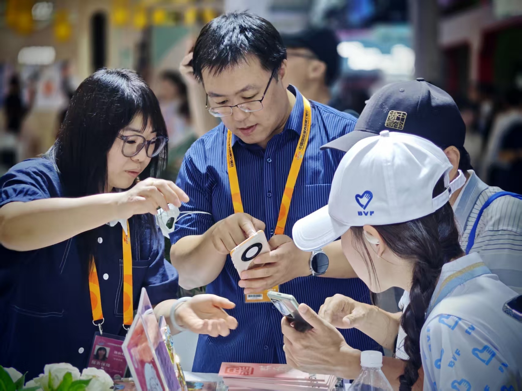 室外的“文博生活創享薈”展區人頭攢動、熱鬧非凡。“這個冰箱貼太獨特了!”觀眾的交談聲和掃碼付款的提示音交織在一起,近30家文博單位齊聚一堂,集中展銷文創精品新品,琳瑯滿目的冰箱貼、手辦、文具、飾品和家居用品吸引眾多觀眾駐足挑選。