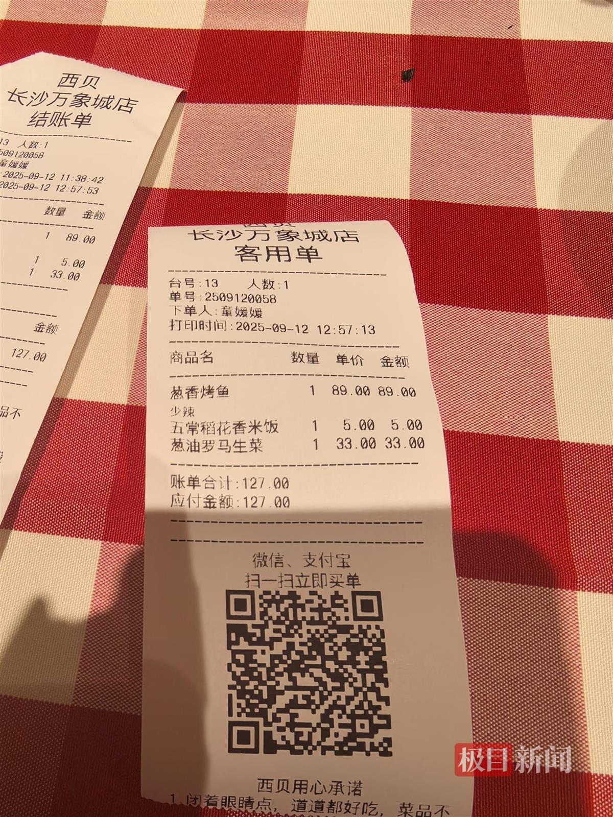 連日來,羅永浩與西貝就預制菜一事爭論不休。9月12日中午,極目新聞記者來到西貝長沙萬象城店,以顧客身份,當場點了羅永浩同款菜單中的蔥香烤魚和蔥油羅馬生菜。
