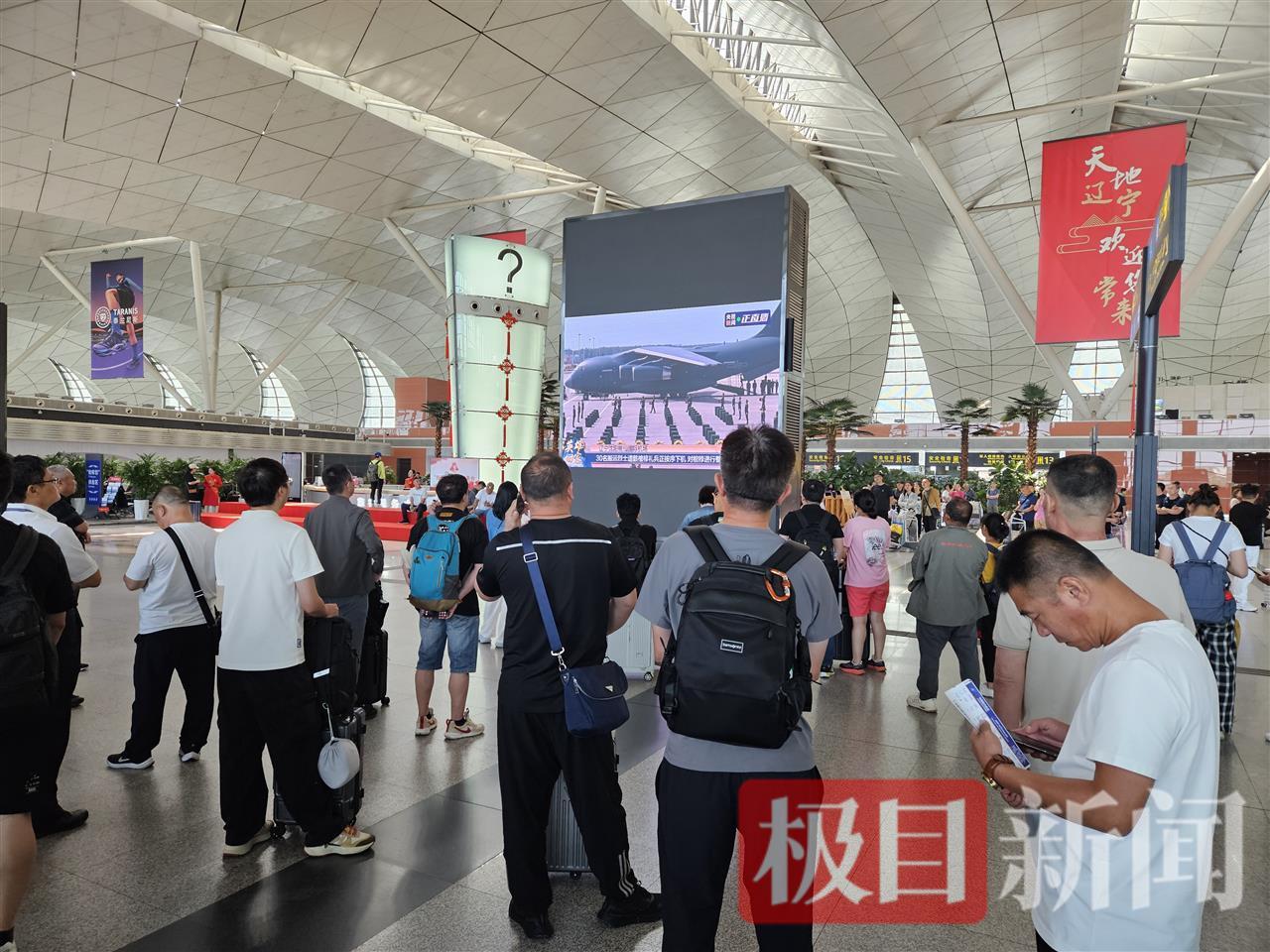 12日上午9時(shí),極目新聞記者來到沈陽桃仙國際機(jī)場,在機(jī)場二樓候機(jī)大廳,來自各地的旅客正在有序辦理值機(jī)、行李托運(yùn)等相關(guān)流程,大廳內(nèi)設(shè)置了兩臺大屏幕播放設(shè)備,有工作人員正在調(diào)試。