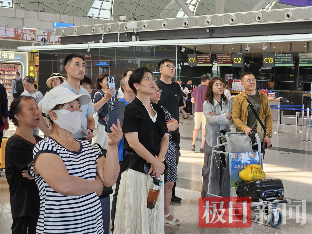 記者在現(xiàn)場看到,待大屏幕設(shè)備調(diào)試好后,機(jī)場工作人員接入了央視新聞的直播信號,因設(shè)備位置距離機(jī)場T3航站樓二樓的入口較近,不少旅客進(jìn)入進(jìn)站口后駐足觀看。
