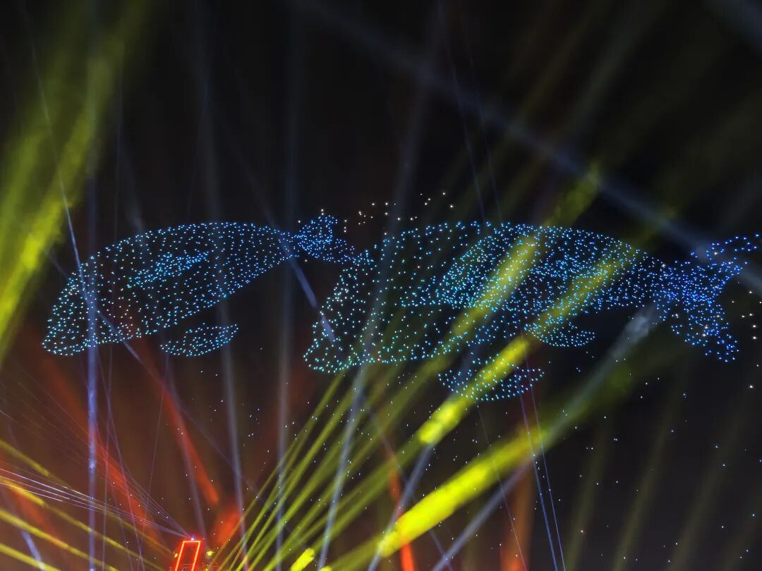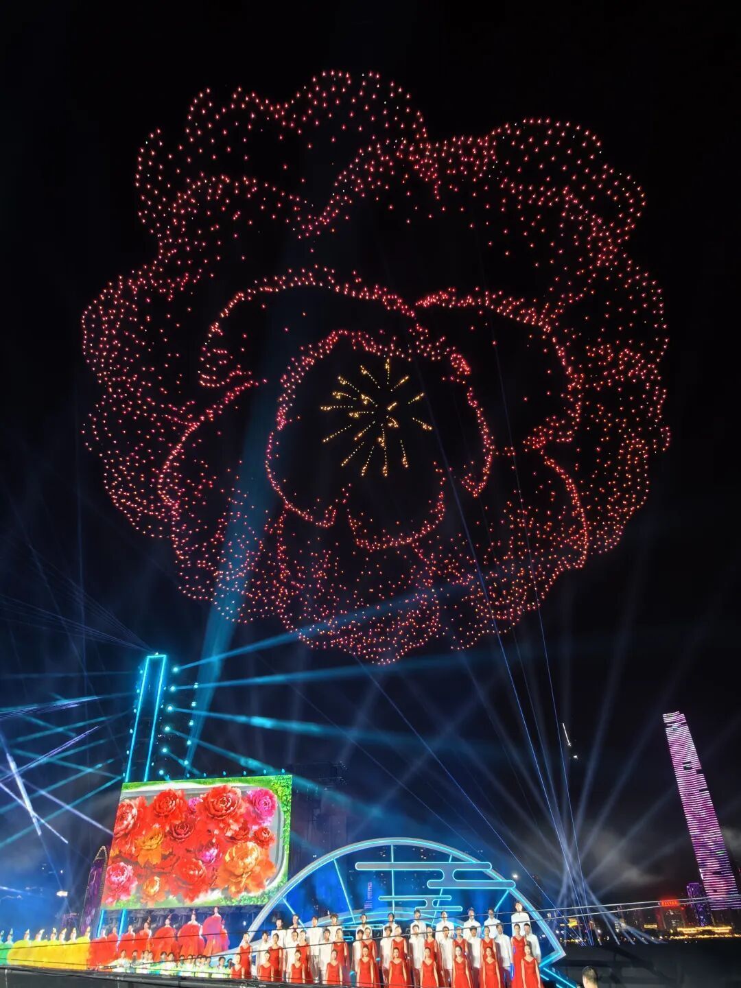 和兩岸樓宇燈光秀、無人機編隊表演等