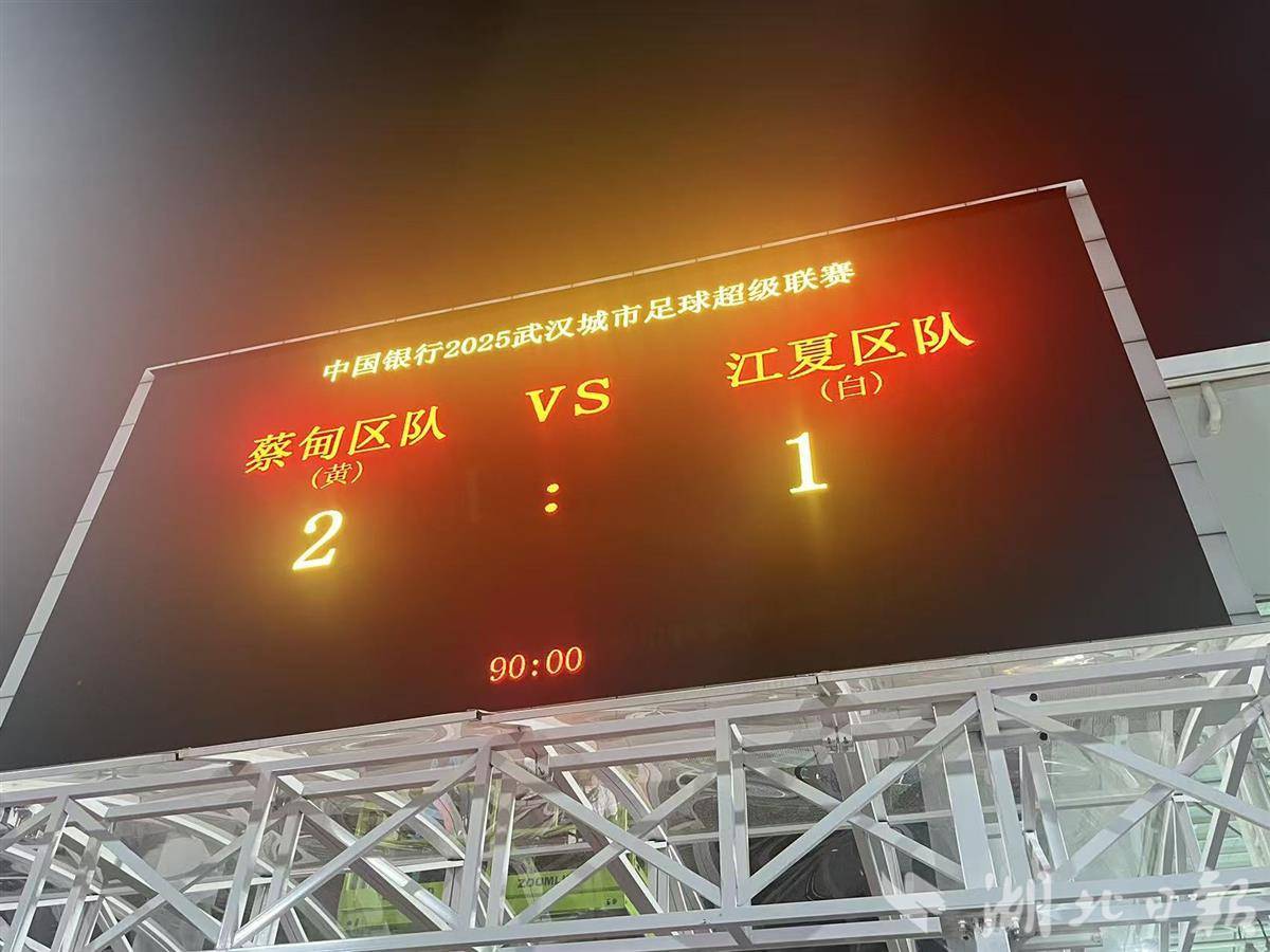 湖北日報訊(記者楊然)“漢超戰鼓響,蔡甸不可擋”,9月12日晚,漢超聯賽迎來第五輪爭奪,蔡甸區隊以2比1逆轉擊敗江夏區隊,鎖定漢陽賽區頭名,獲得了一張向冠軍獎杯發起沖擊的門票。