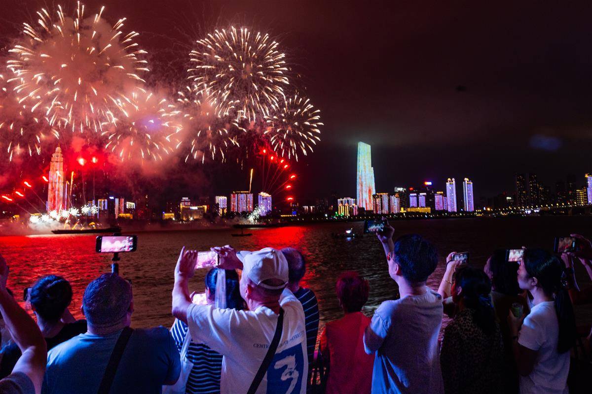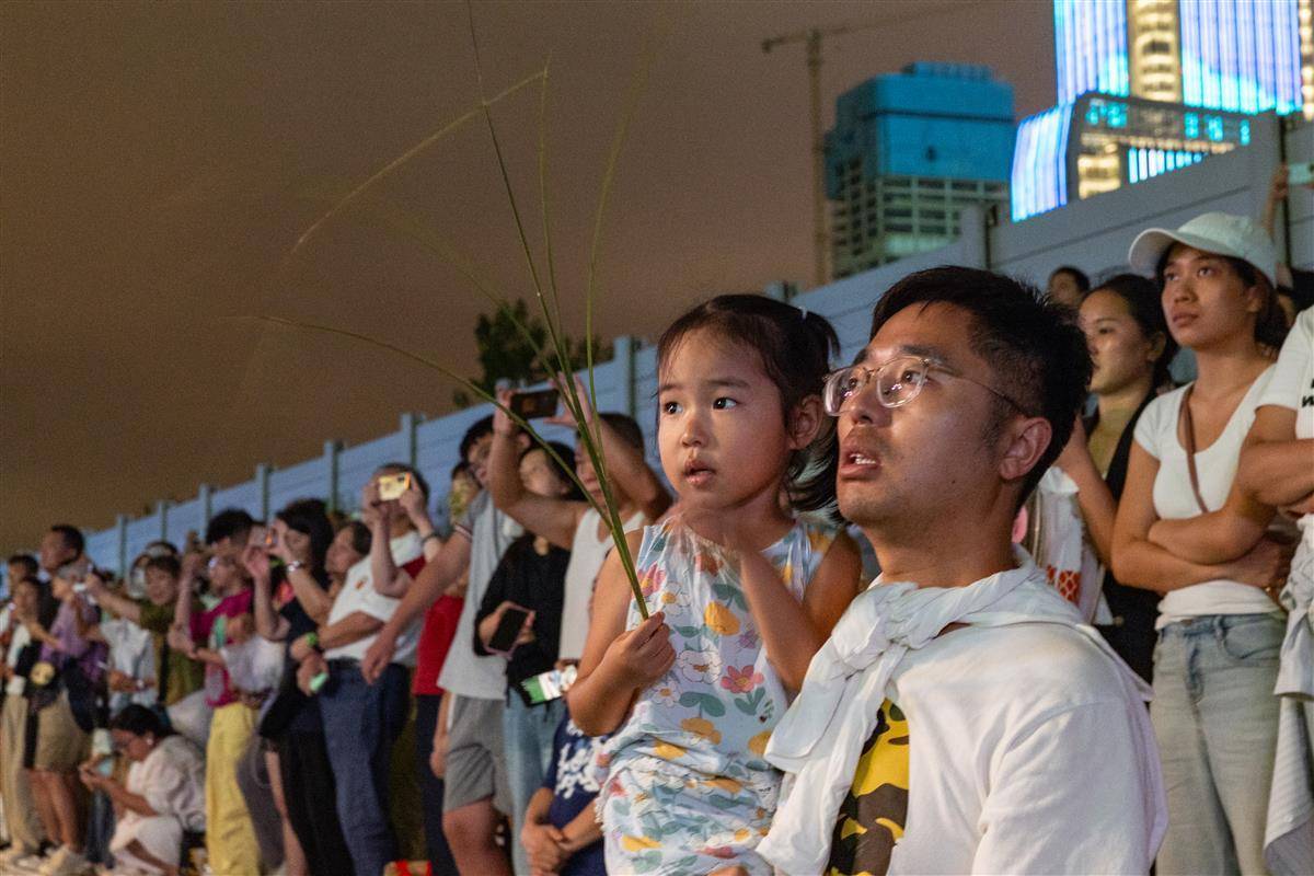 2025年9月12日,市民游客駐足武昌江灘,仰望“江天一色”的立體盛宴,共賞“點亮長江”的科技與文化交融。當日,2025長江文化藝術季在武漢漢口江灘開幕,4000架無人機與1000架掛載冷煙花的無人機在長江上空交織,綻放巨型牡丹與長江流域珍稀動物光影,江面8艘船只同步燃放煙花。(湖北日報全媒記者 倪娜 攝)