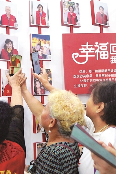 在“幸福回音壁”笑臉墻前,居民們興奮地認領著自己的照片,掃碼給熟悉的鄰居點贊。這條由62張溫暖瞬間組成的長廊,不僅記錄了社區生活的美好時刻,還藏著不少驚喜——只要掃一掃二維碼,就能看到照片主人公書寫的家風故事。這個創新設計讓許多居民駐足良久,一邊瀏覽一邊為感動自己的故事點贊。