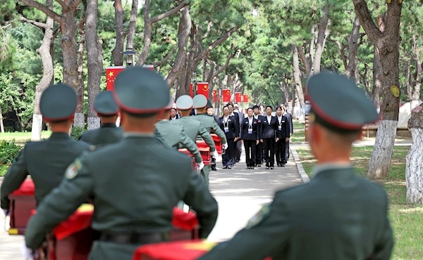 ▲沈陽抗美援朝烈士陵園工作人員迎接志愿軍烈士遺骸