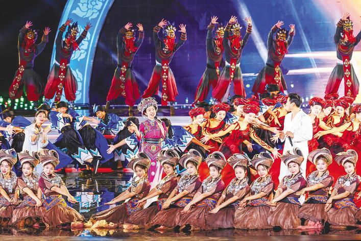 藏族長袖、彝族銀飾、土家族織錦在舞臺上共舞,馬頭琴與二胡對話,竹笛與嗩吶和鳴,長江流域的多樣文化已然繪就一個絢麗的同心圓,這條母親河用藝術展示:百川異響,同歸于海;民族殊韻,共頌中華。