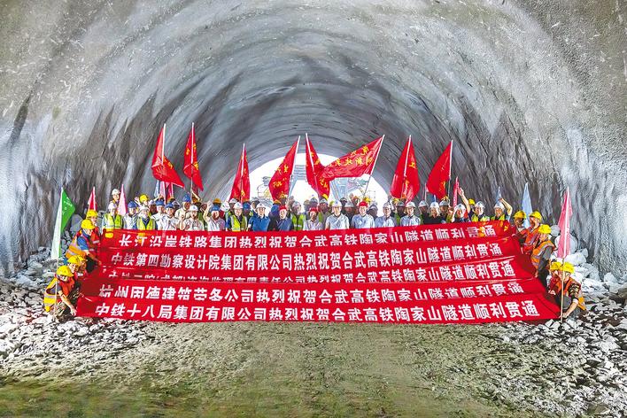 9月12日,由中鐵十八局承建的合武高鐵陶家山隧道提前貫通,成為合武高鐵湖北段首座貫通的隧道。