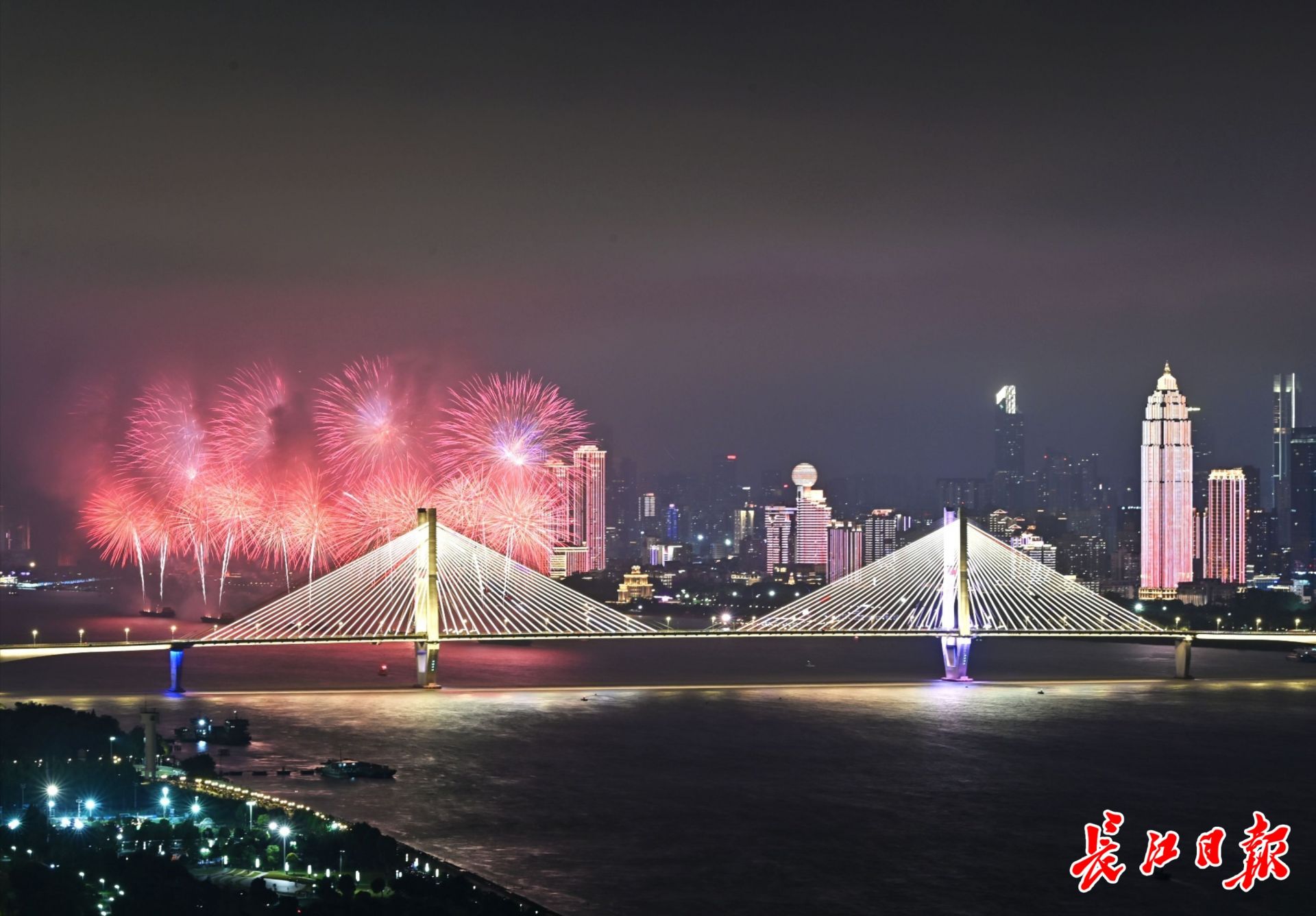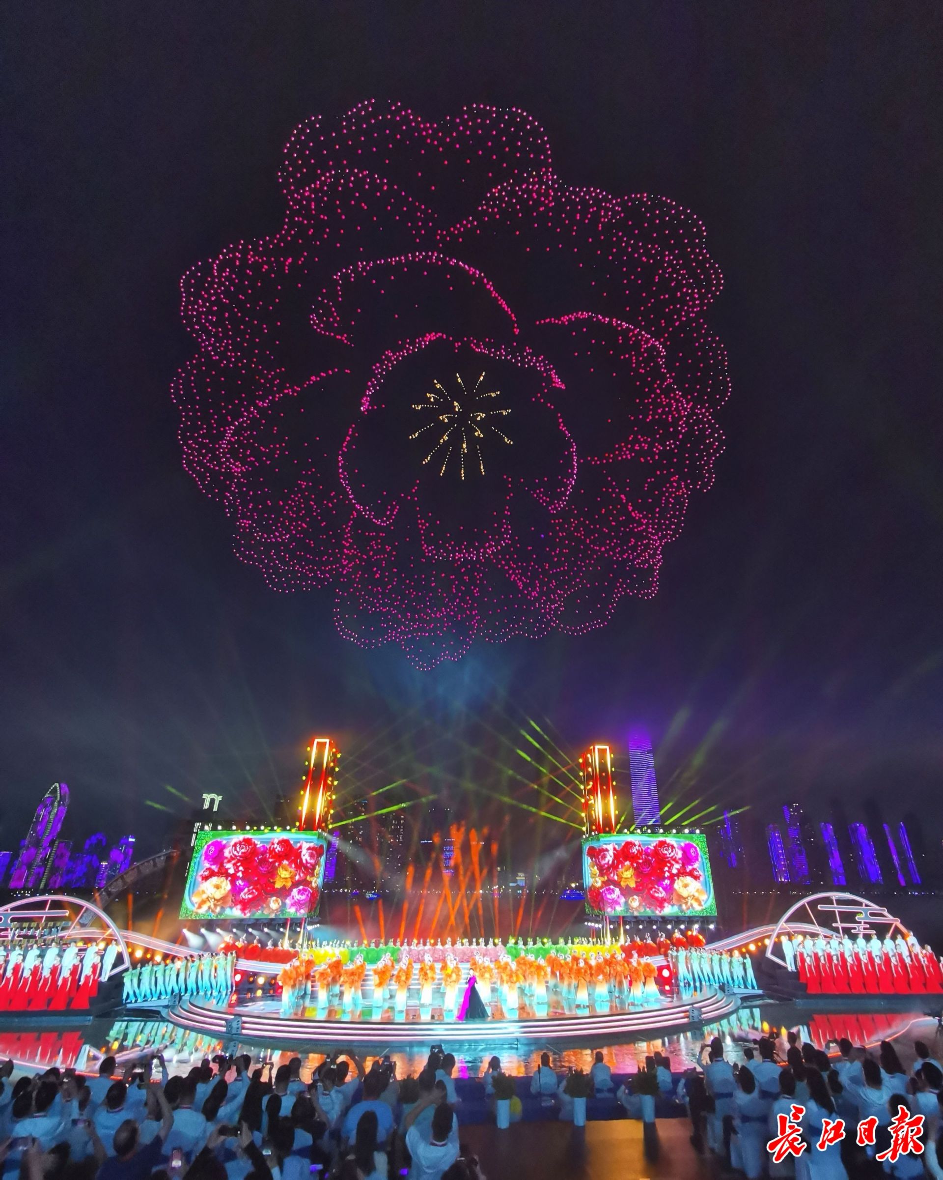 9月12日晚,2025長江文化藝術季開幕式在漢口江灘三陽廣場及長江水域舉行,融文藝演出、絢爛煙花、燈光秀、無人機編隊表演于一體。 記者高勇 攝