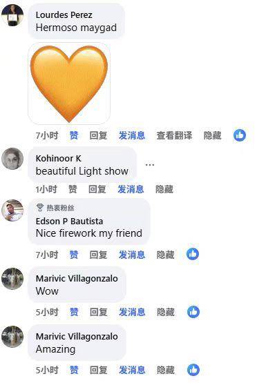 國外友人Edson P Bautista在湖北日報海外賬號的評論區,用簡潔的語言傳遞出對開幕式的喜愛:“Nice firework my friend”(我的朋友,這煙花太棒了)。其他友人提及開幕式上的燈光秀,連連稱贊“美麗和漂亮的燈光秀,哇!這個表演太棒了”,字里行間滿是對這場文化盛宴的認可與喜愛。