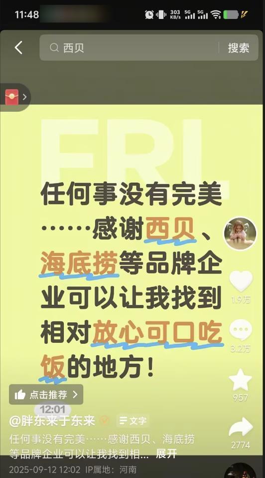 連日來,羅永浩吐槽西貝菜品事件持續發酵。9月12日中午,胖東來創始人于東來在抖音平臺就該風波發聲稱:“任何事沒有完美,感謝西貝、海底撈等品牌企業可以讓我找到相對放心可口吃飯的地方。”但該言論卻遭到部分人嘲諷,有網友稱此后于東來將力挺西貝的言論刪除。