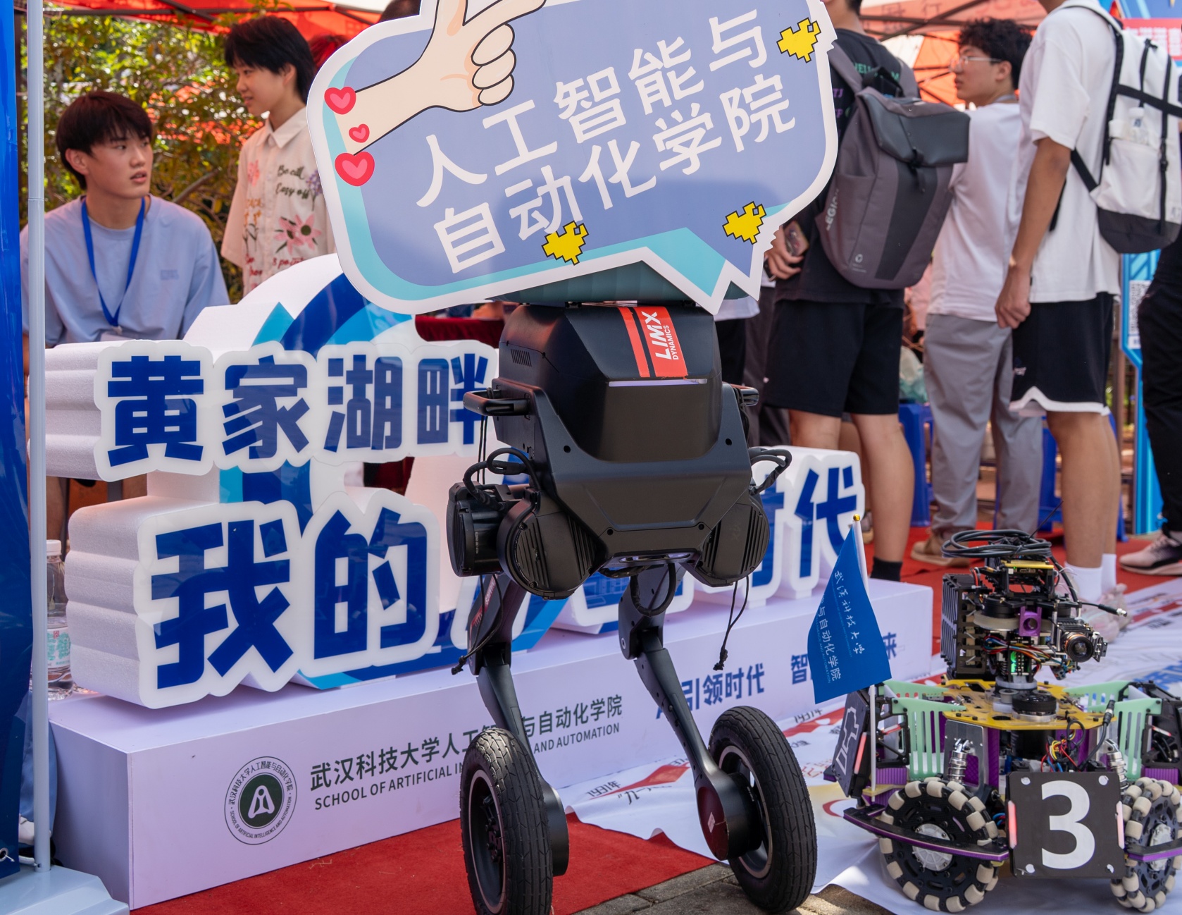 “太酷啦!這機器人還能蹲起旋轉!”在該校北園迎新點,人工智能與自動化學院自主設計的黑色步行機器人一亮相,便引來新生與家長們的陣陣驚嘆。這個頭頂小籃子、腳踩“風火輪”的機器人不僅能靈活地進退自如,承重上限達20斤的它還能與新生互動,幫助他們放置隨身物品。不遠處,機械工程學院展出的3D打印航天發動機模型同樣吸睛。剛剛辦完手續的新生唐詩楊正是該學院的一員,他興奮地在模型和機械狗前駐足許久:“看到這些,我對未來的學習生活充滿期待,希望有一天我也能做出這樣厲害的作品!”
