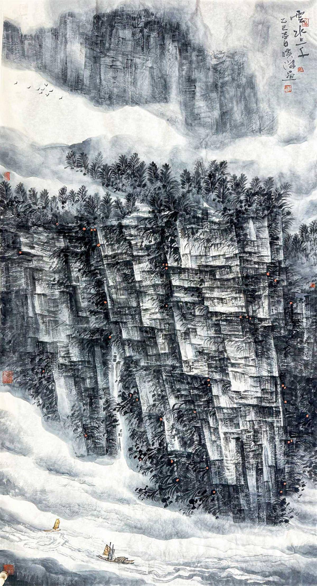 展覽由湖北牽頭承辦,聯動長江流域十三省、自治區、直轄市,聚焦長江沿線標志性景觀與當代發展成就,體現出深厚的筆墨功力與時代情懷,勾勒出一幅幅大美長江的盛世圖景,將“時代場景”融于筆端。