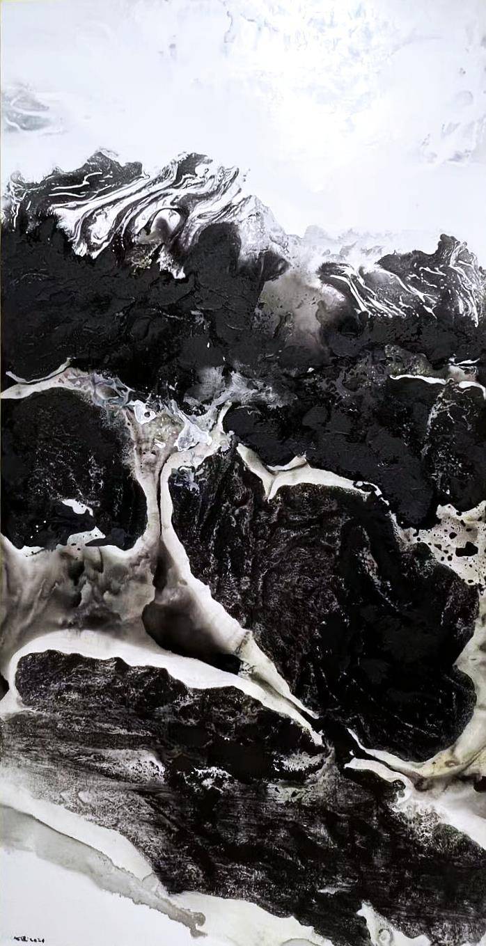 中國畫《壁立云山千刃險 驚濤駭浪一燈明》董繼寧