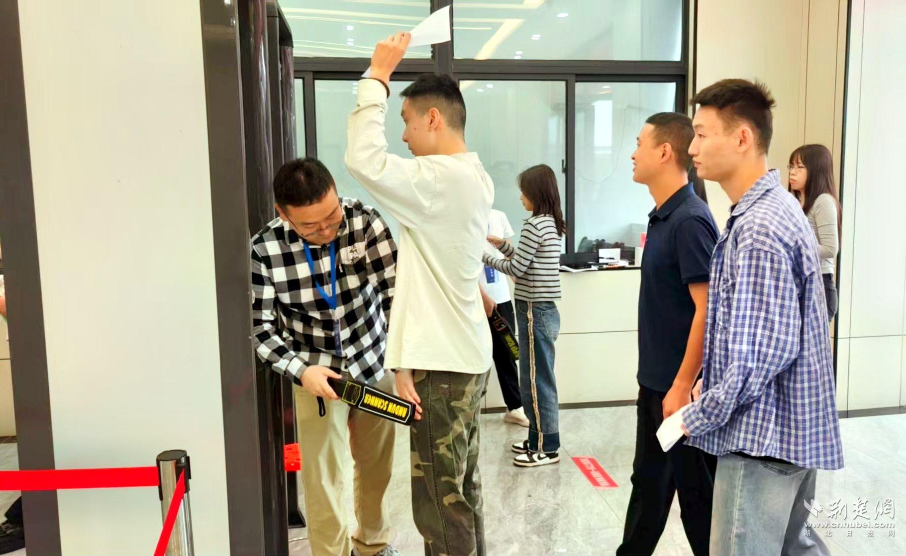荊州考區(qū)荊州市紅十字應(yīng)急救援中心考點,考生在過安檢。龔涌濤 攝