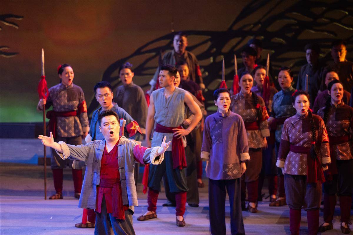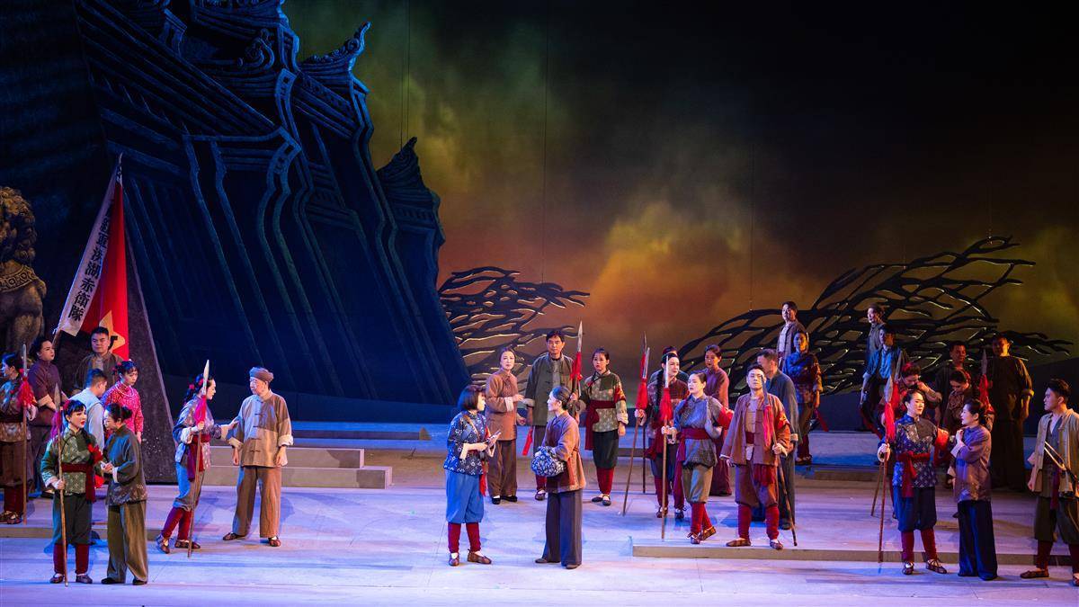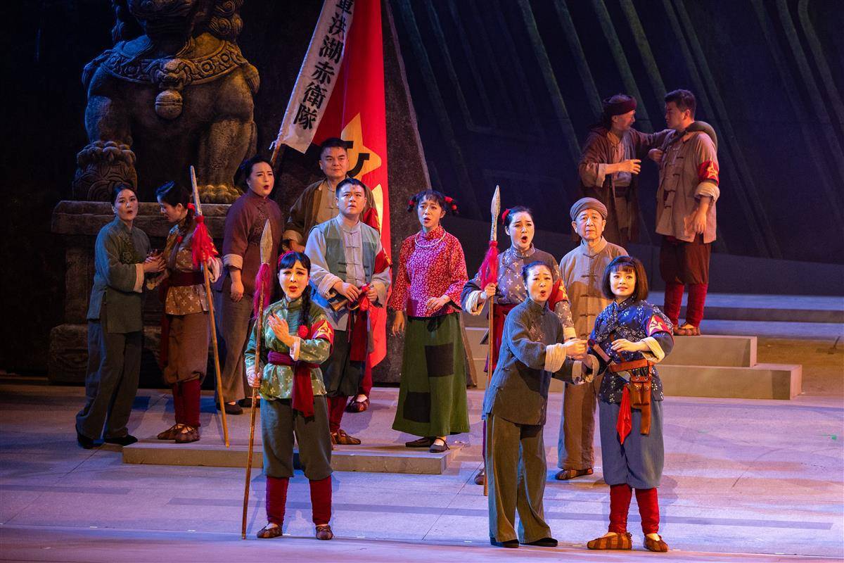 2025年9月13日晚,2025長江文化藝術季“靈動長江”舞臺藝術精品展在武漢拉開帷幕,青春版《洪湖赤衛隊》作為首場演出在湖北劇院震撼上演!在一個多月的時間里,共有17部劇目、27場展演矩陣將在湖北劇院、洪山禮堂、琴臺大劇院、湖北戲曲藝術中心、武漢劇院等劇場陸續進行。展演涵蓋話劇、舞劇、音樂劇、歌劇、芭蕾舞劇、音樂會、戲曲等藝術門類,為江城市民獻上一臺臺文藝大餐。(湖北日報全媒記者 何宇欣 攝)