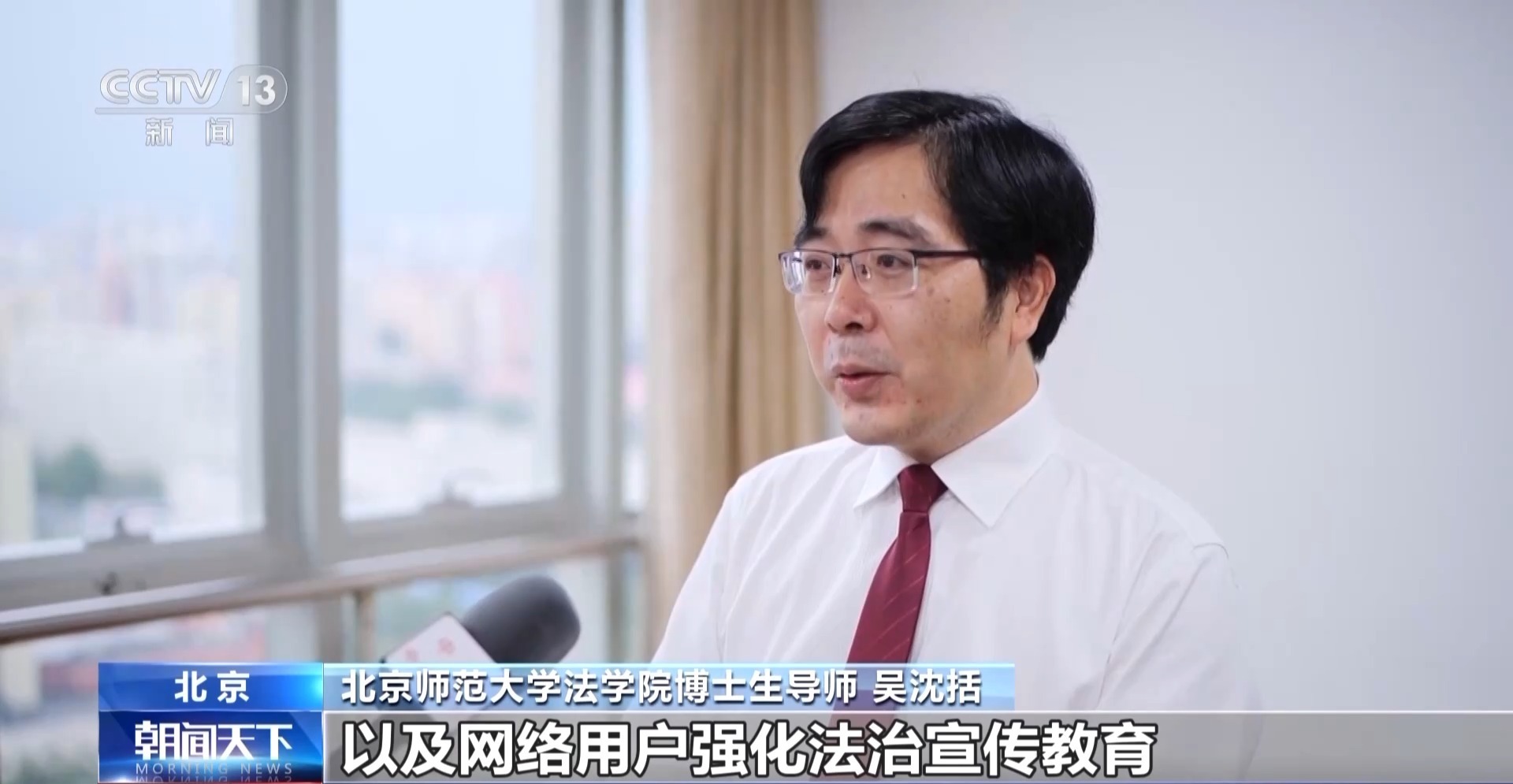 北京師范大學法學院博士生導師 吳沈括:法治宣傳教育法要求網信、電信、公安等主管部門針對網絡服務提供者和從業人員以及網絡用戶強化法治宣傳教育,要求網絡服務提供者對從業人員以及網絡用戶依法開展法治宣傳教育,并且針對比如說消費者權益保護、個人信息保護、反電信網絡詐騙等當下群眾關心的焦點問題,開展專題的法治宣傳教育。