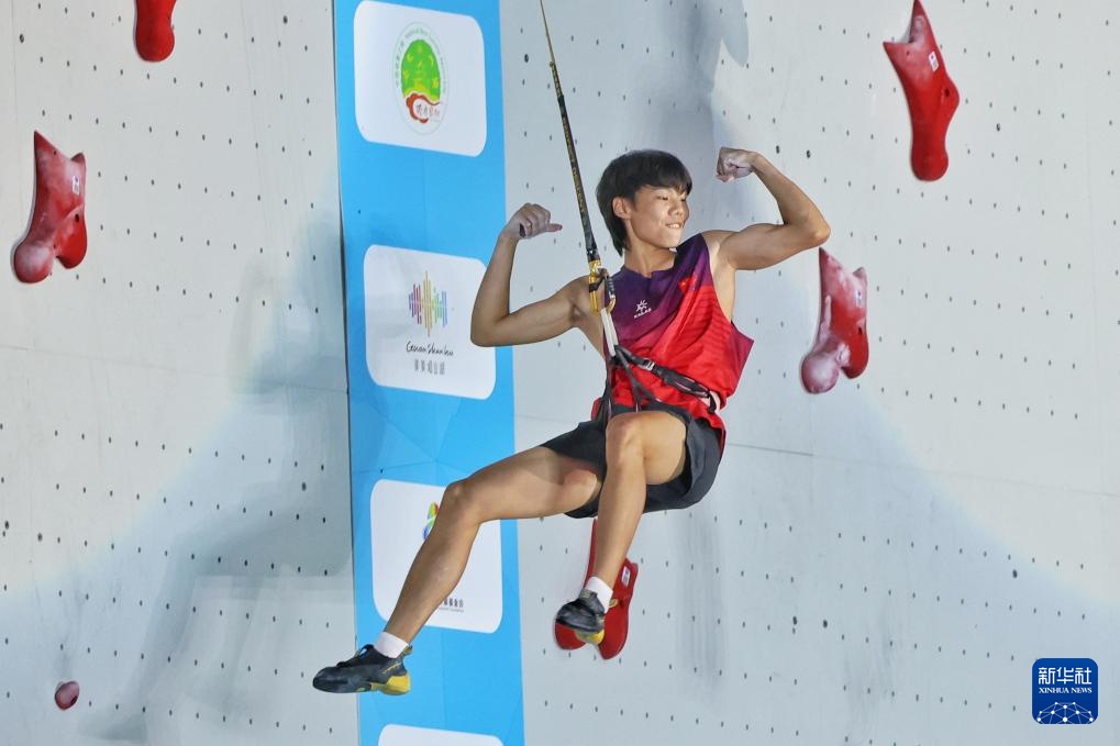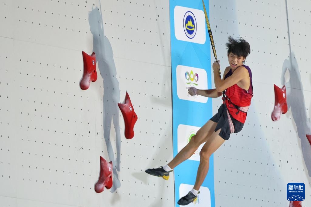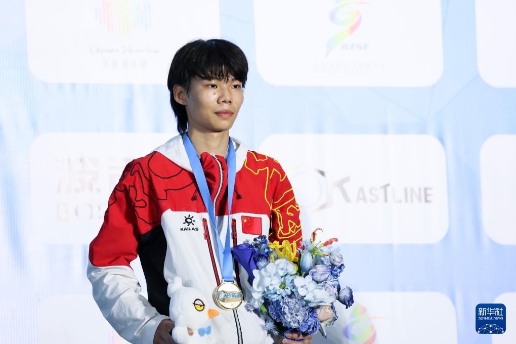 當(dāng)日,在2025年攀巖世界杯貴陽(yáng)站男子速度決賽中,中國(guó)選手儲(chǔ)守宏奪得冠軍。
