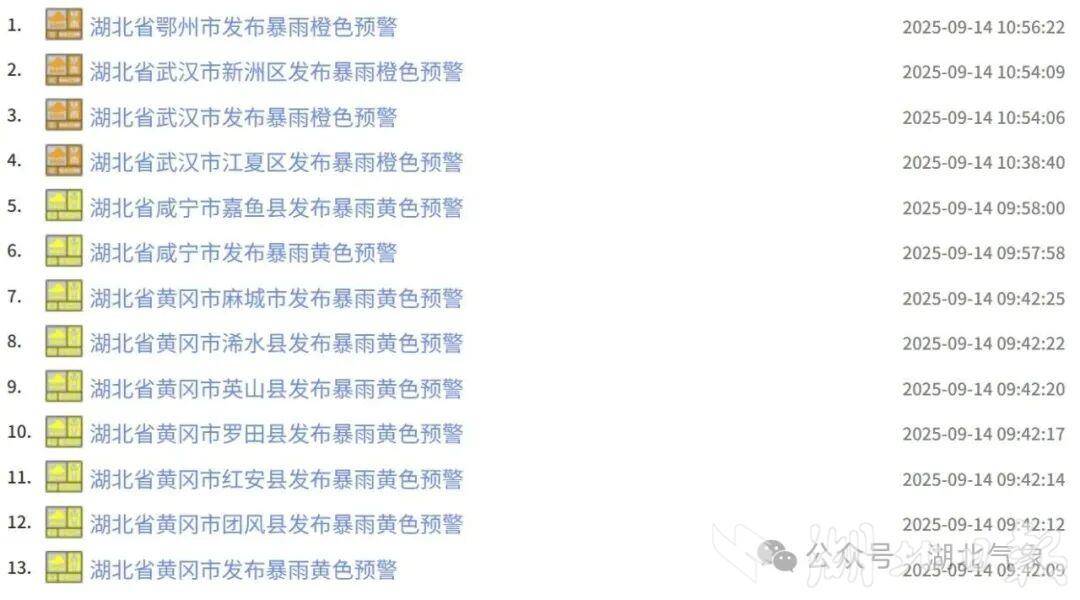 湖北日?qǐng)?bào)訊(記者曾莉)“秋老虎”要發(fā)威了!9月14日,湖北多地遭遇降雨襲擊,武漢多地出現(xiàn)大到暴雨,全省共發(fā)布60多條暴雨、強(qiáng)對(duì)流預(yù)警信號(hào)。不過(guò),13日起晴熱高溫天氣回歸,最高氣溫將沖到38℃。