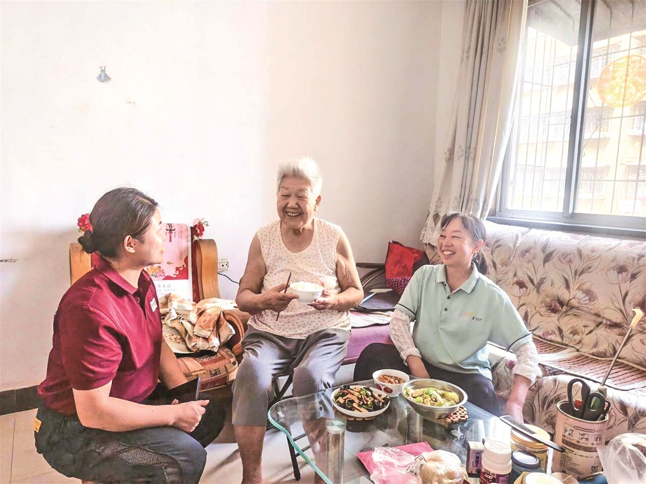 “小謝除了做飯,還幫忙收拾屋子,現在家里人都放心多了。”史愛華滿意地說。恰逢她的妹妹和妹夫專程從襄城區前來探望,得知姐姐的吃飯問題終于解決,不禁連連稱贊:“姐姐真是住到了一個好社區!”