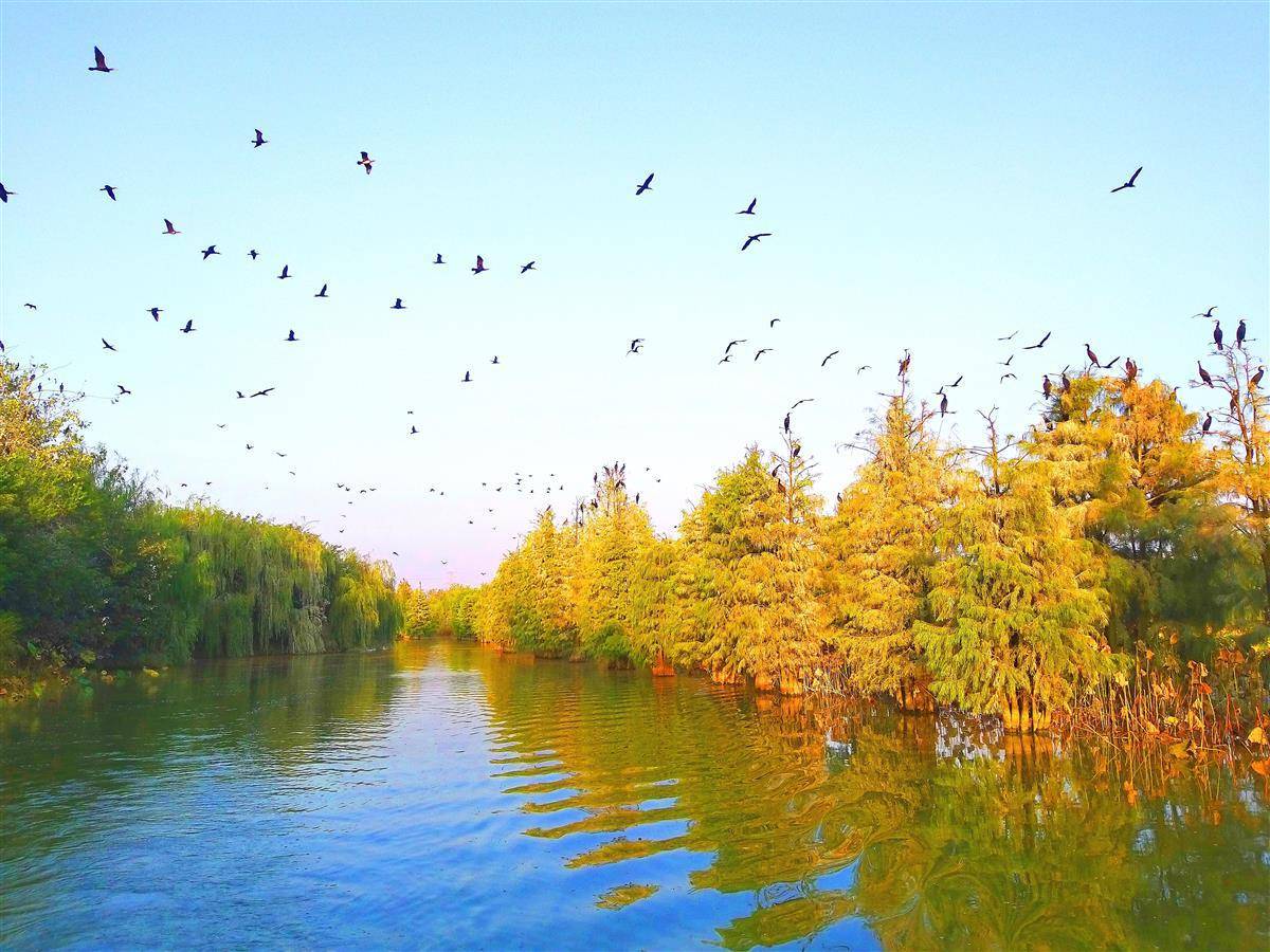 3248公頃濕地保育區、627公頃恢復重建區、734公頃合理利用區,織牢野生動植物保護網。周邊5000公頃農田取締高殘留農藥,重建候鳥食物鏈;退田還湖,種植蘆葦、荷花凈化水質,為鳥類提供隱蔽巢址。天空重歸湛藍,272種水鳥在湖面嬉戲,一幅“水清岸綠、魚翔淺底、天高云淡”的美麗畫卷徐徐展開。