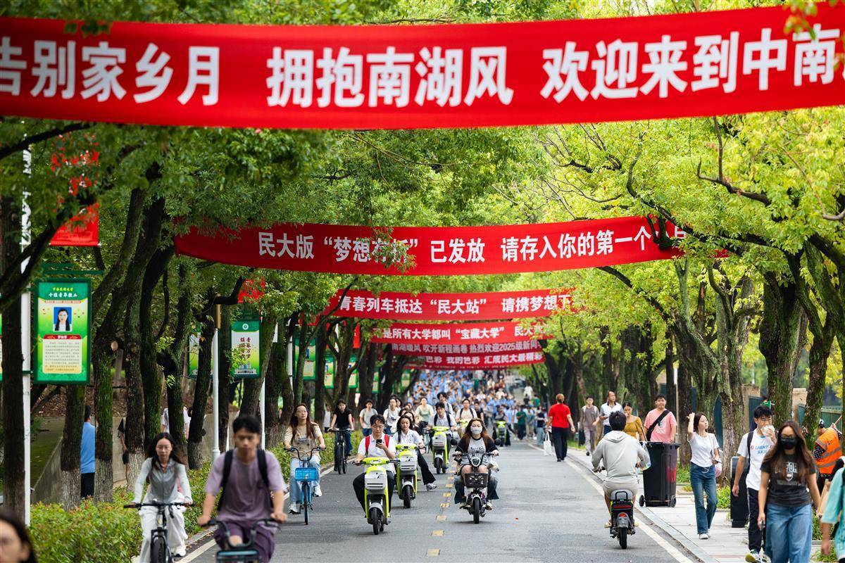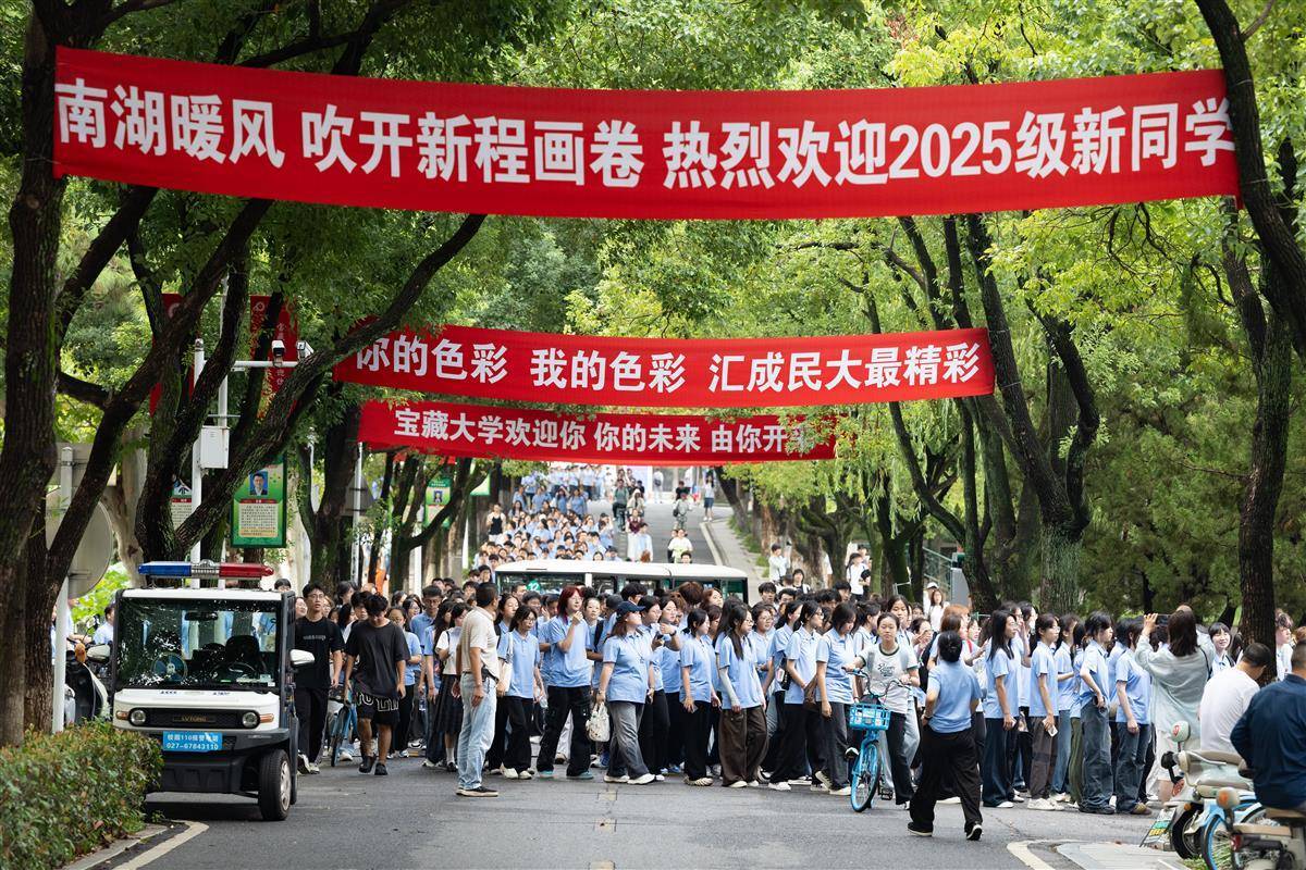 2025年9月15日,中南民族大學(xué)迎來2025級學(xué)生開學(xué)典禮,在校內(nèi)民族路上,綠樹成蔭,十余個寫著勵志話語的橫幅沿途展開,新生們穿梭其間,宛如穿行在一條“勵志大道”,這正是青春浪漫的中國式表達(dá)!(湖北日報全媒記者 何宇欣 通訊員 龍華 攝)