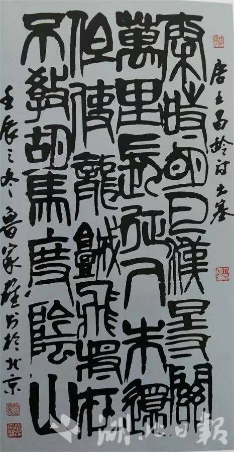 2021年,為獻禮建黨百年,魯家雄曾歷時一年完成大型篆刻作品《百壽圖》,該作品以101方不同印章組成,每方篆刻的“壽”字陰陽結合,形態各異,展現了深厚的功力和對傳統文化的傳承。