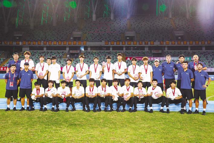回望五場比賽,20號張正熙忍住左腳踝腫脹的傷痛,踢完最后3場比賽;6號邊威豪右腿嚴重挫傷后,咬著牙踢完決賽;主教練馬克起得最早睡得最晚,牢牢掌控著每一場比賽的方向;省足球運動管理中心后勤團隊時刻待命,為球隊保駕護航……