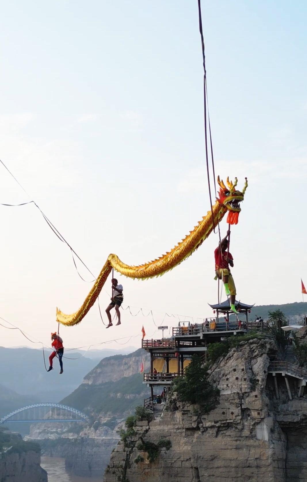 決賽完成后,由冠軍、亞軍、季軍聯合在黃河峽谷中180米的高空扁帶上進行舞龍表演,將傳統民俗與極限運動破圈結合。