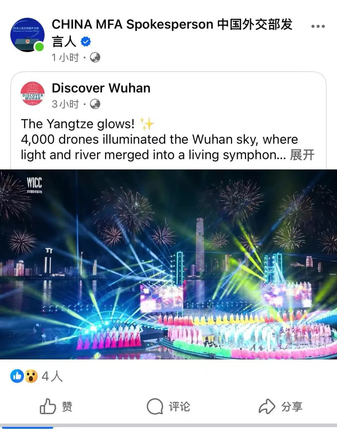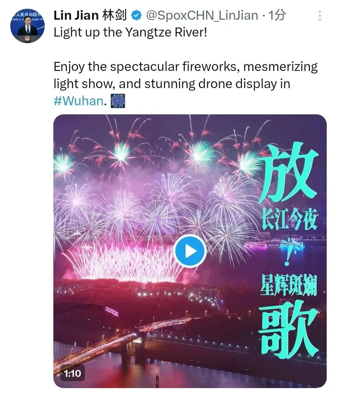 外交部發言人去年轉發《放歌!長江今夜星輝斑斕》截圖
