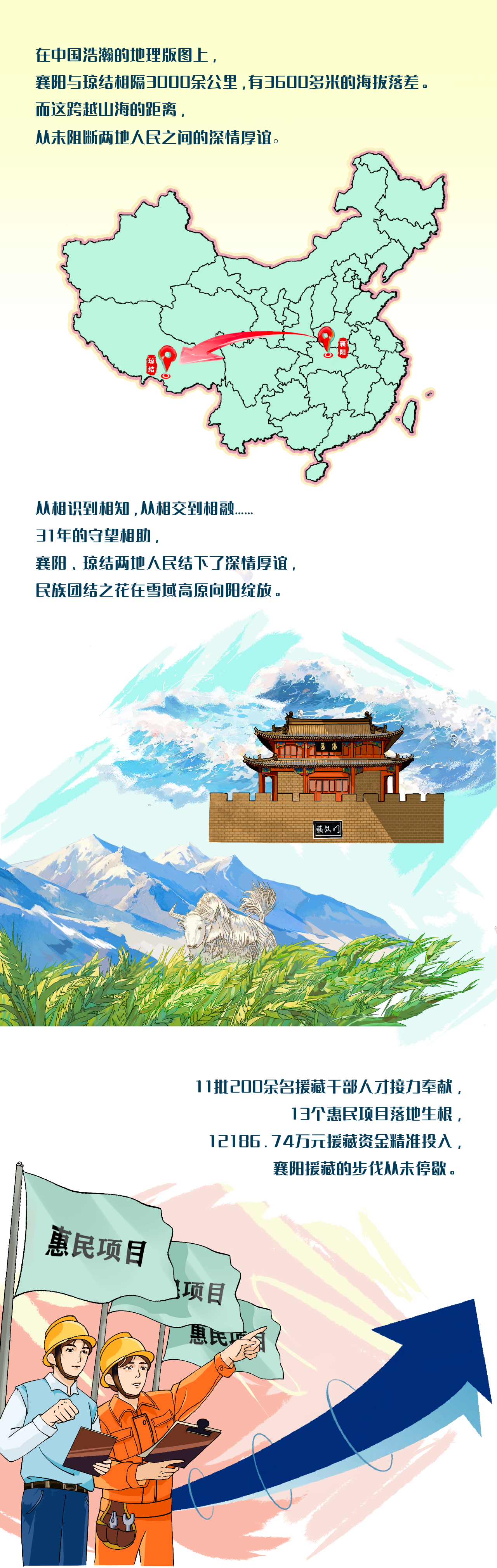 11批200余名援藏干部人才接力奉獻;13個惠民項目落地生根;12186.74萬元援藏資金精準投入......襄陽援藏的步伐從未停歇。從相識到相知,從相交到相融,31年的守望相助,襄陽、瓊結兩地人民結下了深情厚誼,民族團結之花在雪域高原絢麗綻放。