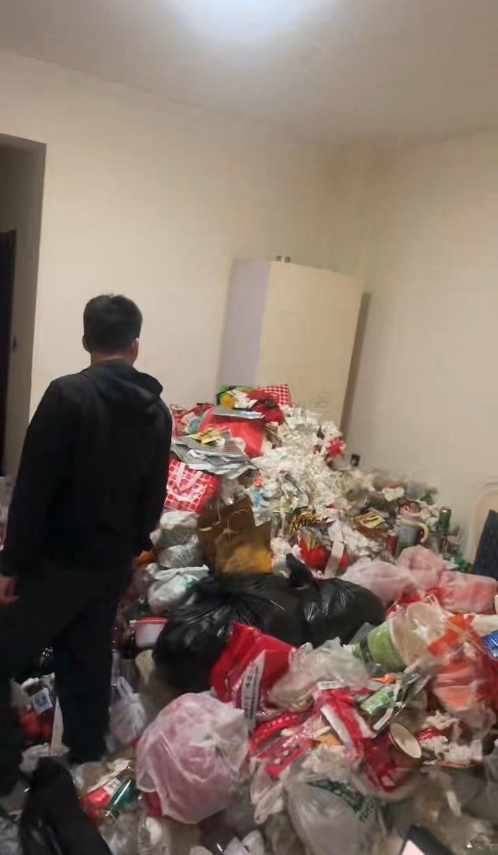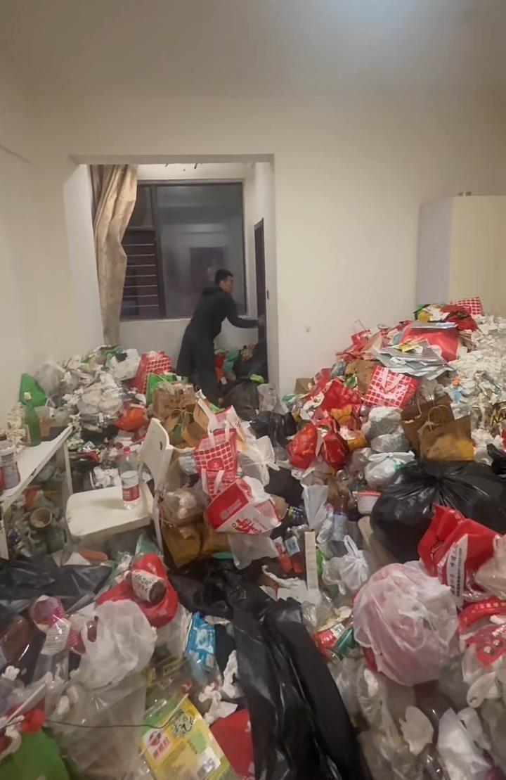 當晚,翼先生花4000元錢找了一輛中型垃圾車,又花2000元找保潔,僅屋里清理出來的外賣垃圾,就足足裝滿了3車。翼先生又花900元請了搬運工,把床、衣柜、桌子、茶幾等家具全部扔了,這些家具價值2000多元。