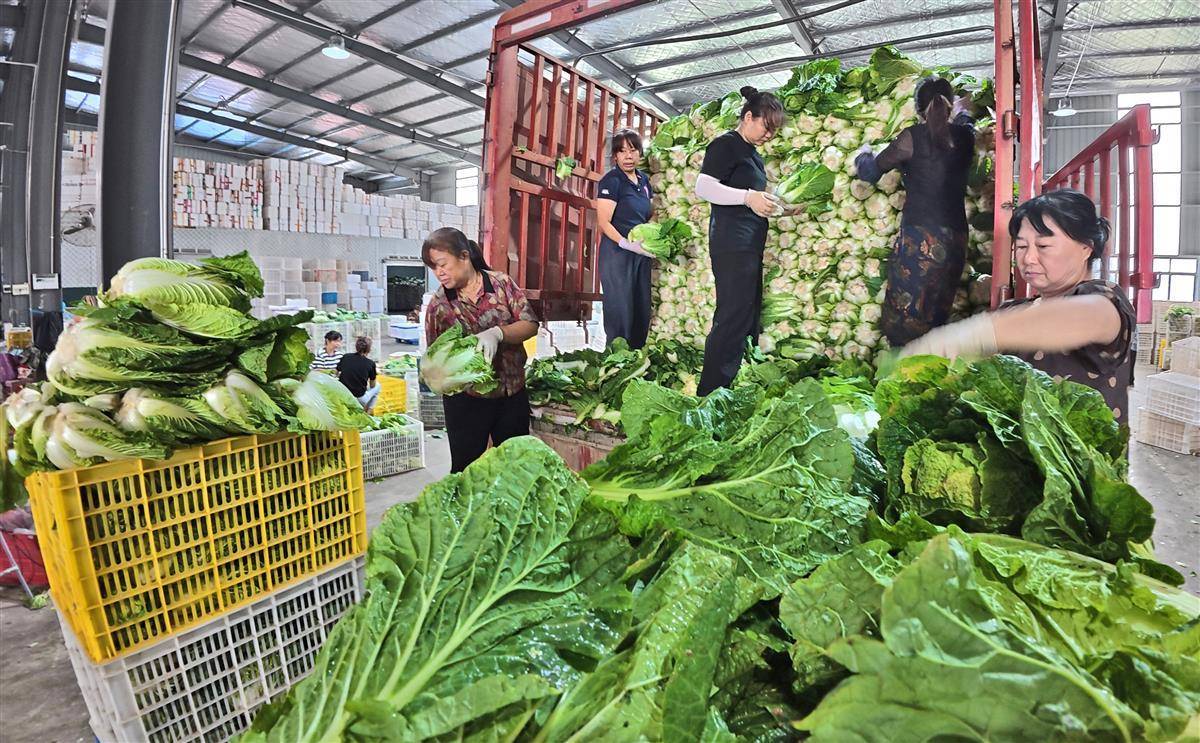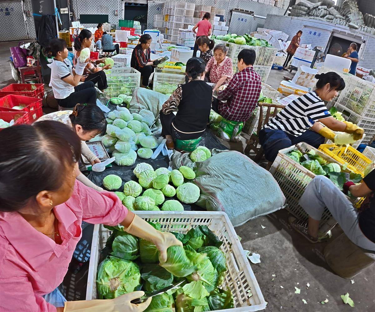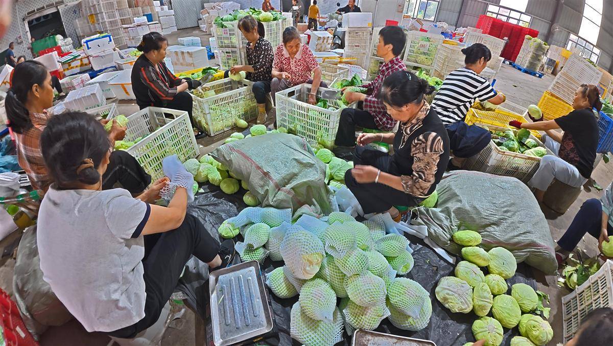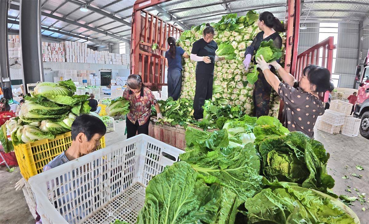 9 月 9 日,荊州市荊州區李埠鎮旭東蔬菜產銷專業合作社內一派繁忙景象,產銷鏈條高效運轉。眼下荊州區蔬菜產業正值產銷旺季,全區蔬菜種植面積穩定、品類多元,依托成熟的產銷對接體系,本地優質蔬菜持續保障省內外市場供應,成為區域農業發展的重要支撐。旭東蔬菜產銷專業合作社加工車間里,工人嫻熟分揀各類蔬菜,動作連貫有序;裝車區中,滿滿一車新鮮蔬菜整裝待發,即將運往外地,當前供應的蔬菜種類豐富,涵蓋球白、苦瓜、瓠瓜及外地蘿卜等,日均銷量穩定在 7 到 10 萬斤,產品主要銷往北京、上海、福建等地區,不僅是荊州區蔬菜外銷的重要窗口,更持續為各地市民餐桌輸送新鮮 “荊味”。(湖北日報全媒記者 劉曙松 通訊員 肖敏 攝)