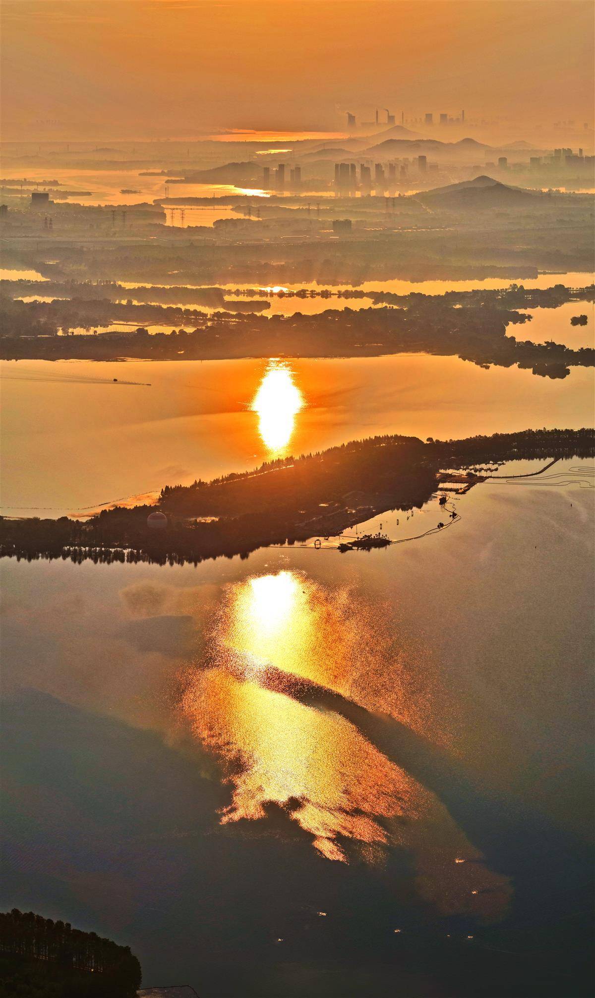 9月16日清晨,武漢東湖迎來絕美日出,晨光漫灑湖面,山水相映間景致美不勝收。當日東湖區(qū)域空氣格外清新,能見度極高,遠處山巒輪廓清晰分明,近處湖面波光粼粼,晨光為湖水與山體鍍上柔和光暈,整體畫面如詩如畫,盡顯自然之美。(湖北日報全媒記者 劉曙松 攝)