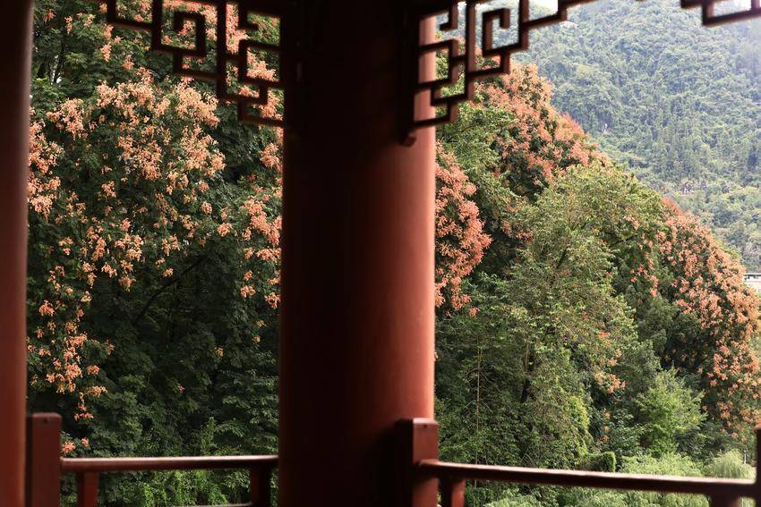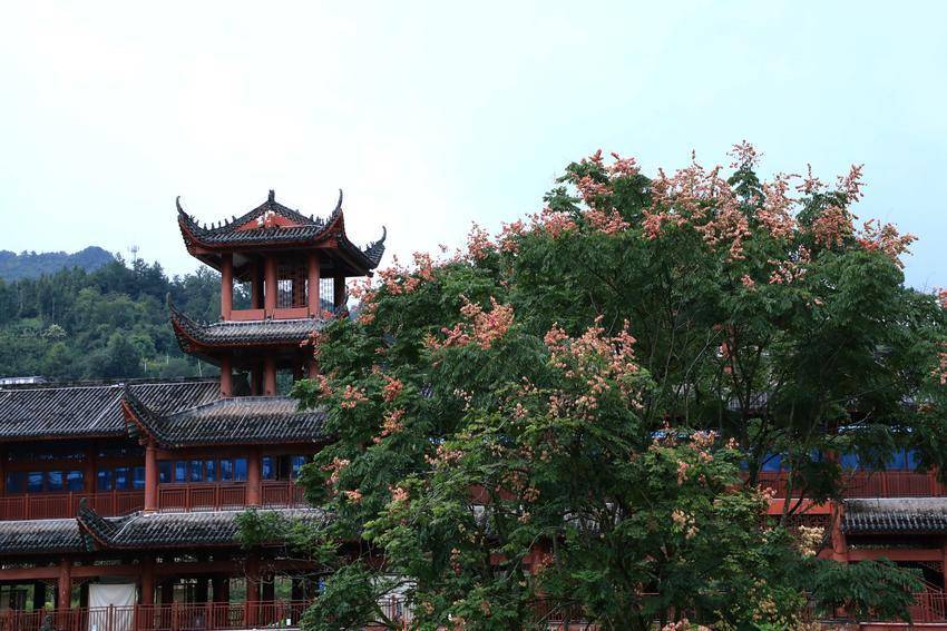 湖北日報客戶端訊(通訊員 溇水濤聲 鄭紅)溇水兩岸,欒樹綴滿艷紅的花朵,將秋天暈染成絢爛盛宴。亭臺樓宇間,風鈴叮咚,奏響清脆的秋之樂章。