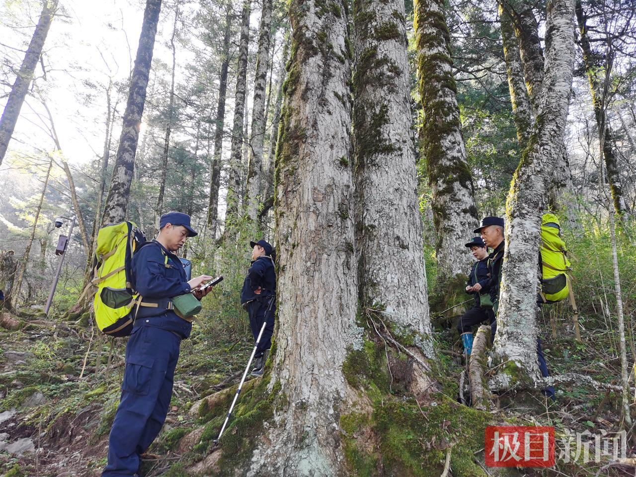 肖傳華(左一)和同事在進行樣地監(jiān)測