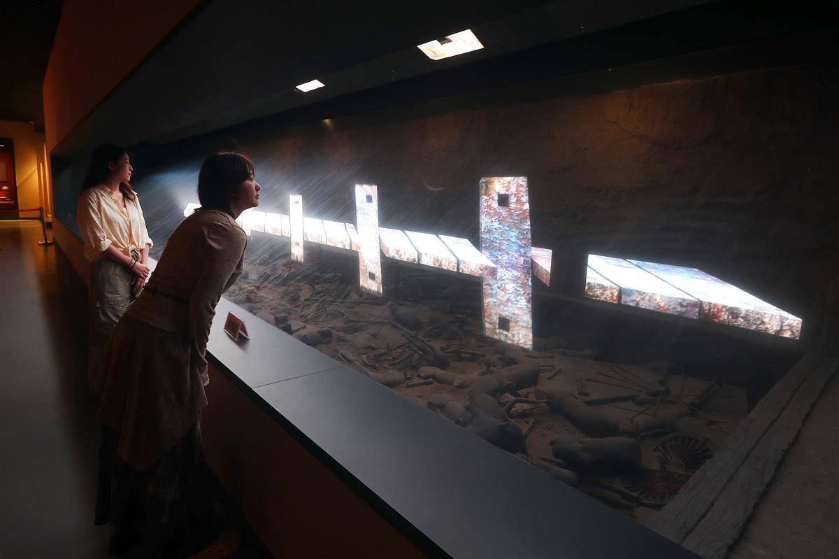 荊門市博物館運用數字技術,向游客展示林場遺址車馬坑。