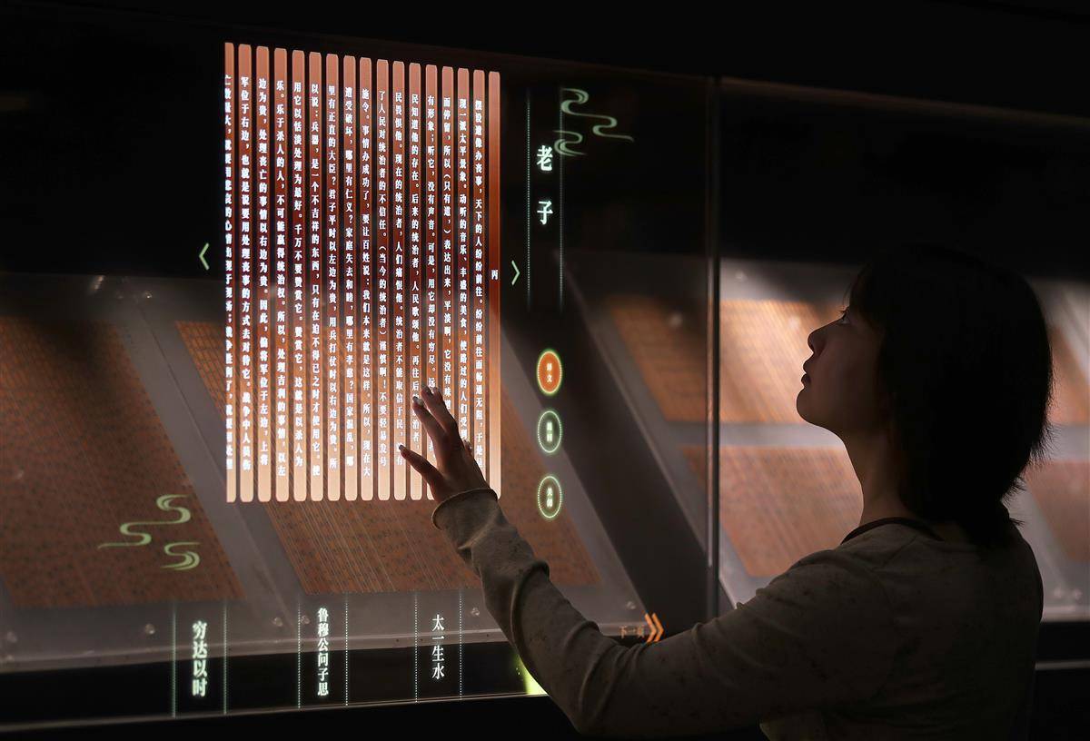 荊門市博物館運用數字技術,向游客展示郭店楚簡《太一生水》。