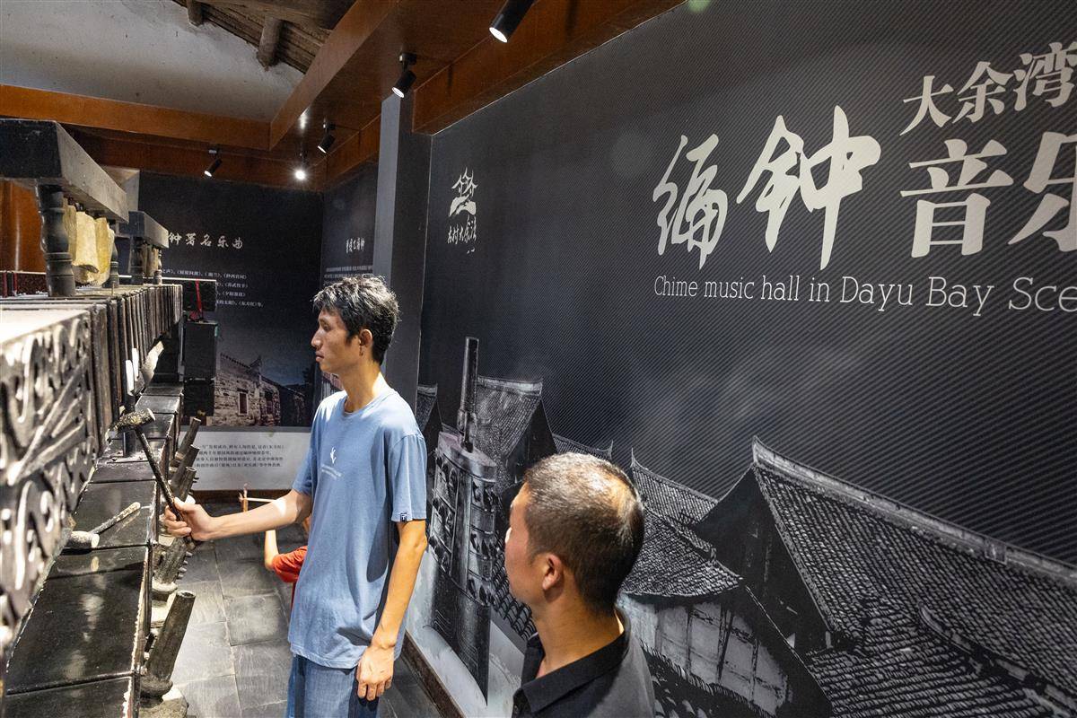 2025年9月10日,市民游客在黃陂大余灣民居內(nèi),體驗(yàn)編鐘文化。(湖北日?qǐng)?bào)全媒記者 倪娜 攝)